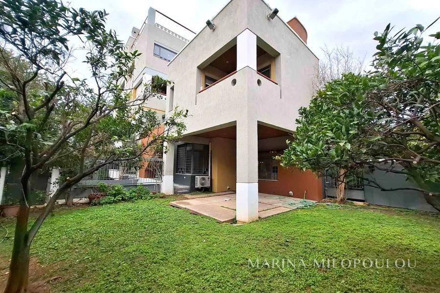 GLYFADA (Lower Glyfada), a Ground Floor – 1st Maisonette, Total area: 193 sq.m. with private garden. - Ground floor: Entrance hall, living - dining area, kitchen, 1 wc, with direct access to the private garden where the storage room is located. - 1st floor, accessible via an internal staircase, featuring 3 bedrooms (including 1 master bedroom), 1 additional bathroom, and verandas. The property offers autonomous natural gas heating, air conditioning in all main areas, a fireplace in the living room, double-glazed windows, insect screens, electric shutters, marble flooring throughout, alarm system, and an underground parking space. The maisonette is part of a residential complex consisting of only 5 apartments, while enjoying its own private entrance. Maintenace expenses approximately €80/month. Located in an excellent residential area, just 750 m from Glyfada’s shopping area, 1.4 km from Glyfada beach and marina, 2 km from the 5★ "One&Only Resort" beach, and 23 km from Athens International Airport.