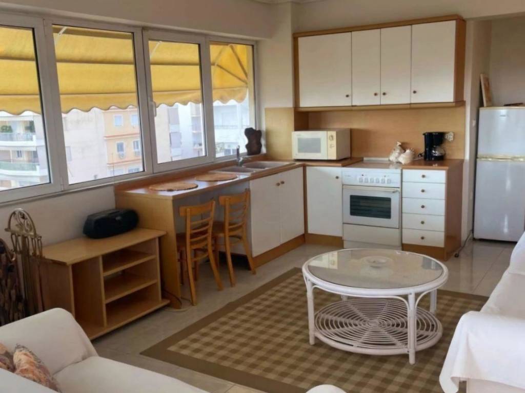 A 75 sq.m. top-floor apartment is available for rent on the 5th floor (penthouse), in the area of Upper Glyfada. The property, built in 2006 and fully renovated in 2025, consists of two bedrooms, a living room, a kitchen, and a bathroom, offering a comfortable and functional layout. It also includes one parking space in a closed garage, providing added convenience and security. It features independent oil heating, air conditioning, aluminum frames with double-glazed windows, tiled and wooden floors, elevator, electrical appliances, insect screens, awnings, security door, electric shutters, night electricity tariff, and a BBQ area. The apartment is painted, fully furnished, front-facing, through-apartment, and exceptionally bright, with an east–southeast orientation and panoramic views combining sea, mountain, open horizon, and urban landscape. Its modern and luxurious character makes it an ideal choice for comfortable urban living. It is located in a quiet neighborhood, in an excellent spot, very close to public transportation, parks, squares, shopping areas, and dining options. The indicated location is for reference purposes only. For more information or to arrange a viewing: KOSMOS REAL ESTATE Property Manager: Alexis Kosmopoulos – +30 6986109593 info@kosmosrealestate.gr www.kosmosrealestate.gr