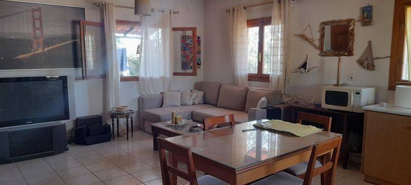 Property Code: 23-3168 - House FOR RENT in Loutraki-Perachora Center for € 550 . This 74.00 sq. m. furnished House is on the Ground floor and features 2 Bedrooms, an open-plan kitchen/living room, bathroom . The property also boasts Heating system: Air conditioner, unobstructed view, Window frames: Wooden, garden, A/C, alarm system, electrical appliances, ceramic roof, open space, balconies: 70 sqm. The building was constructed in 2001 and renovated in 2015 Plot area: 800 s.q. . Building Energy Rating: D Distance from sea 800 meters, Distance from the city center: 800 meters,
