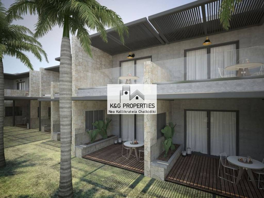 For sale: newly built 51 sq.m. maisonette with street frontage in the area of *Kallikrateia – Nea Kallikrateia*. It is a luxurious, bright property featuring a swimming pool and is located on the ground floor of the building. Construction is currently in progress. The residence is arranged on two levels connected by an internal staircase. It includes 2 bedrooms, a living room, a kitchen, and 2 bathrooms. Additional features include a garden, a veranda, and a parking space. It is equipped with synthetic window frames with double glazing, and tiled floors throughout. Heating is autonomous and electric, and air conditioning is also installed. The energy class is A+. The property has a southern orientation and offers unobstructed views. It is located just 150 meters from the sea. The location is close to a park and the beach. Given its characteristics, it represents a strong investment opportunity. Pets are welcome. Balcony area: 10 sq.m. Sale price: €168,000 The property is immediately available. Property code: 1.054.01