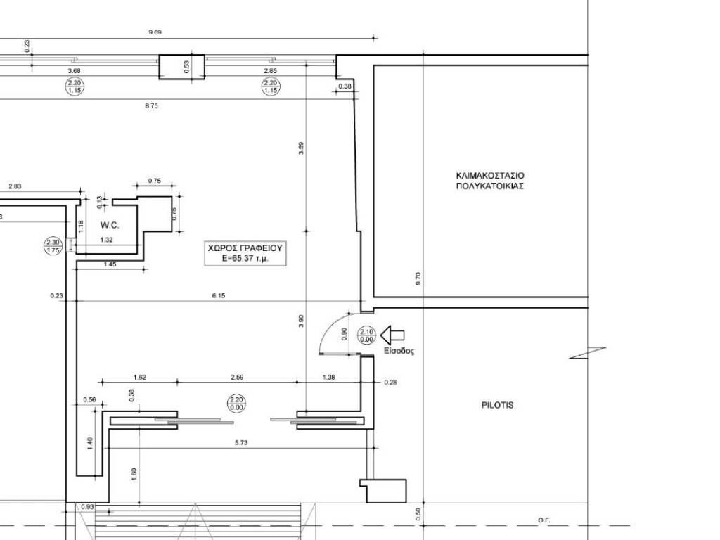 Νεα Σμυρνη Ισόγειο γραφείο 66τμ σε πολυτελή οικοδομή του 1995 στην οδό Νικομηδείας 10. Χωρίς κοινόχρηστα. Διαμπερές, φωτεινό με μπαλκονόπορτα μπροστά με απο το πάρκινγκ και παράθυρα σε όλο το μήκος του πίσω μέρους καθώς και ξεχωριστή πόρτα εισοδου που βγάζει στην αυλή. Διαθέτει ανοιχτό ιδιόκτητο πάρκινγκ 2 θέσεων με ηλεκτρική γκαραζόπορτα (δυνατότητα για 4 βάζοντας το ένα πίσω από το άλλο). Αυτή τη στιγμή βρίσκεται σε στάδιο ριζικής και πολυτελούς ανακαίνισης με δύο μπάνια (το ένα με διαστάσεις ΑΜΕΑ) με εντοιχισμένα καζανάκια Geberit, Αλλαγή όλη η υδραυλική και ηλεκτρολογική εγκατάστσση με νέο πίνακα, προεγκατάσταση συναγερμού, αναμονή για 2 μπριζες ηλεκτρικών αυτοκινήτων, ψευδοροφή κλπ