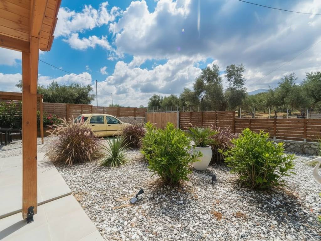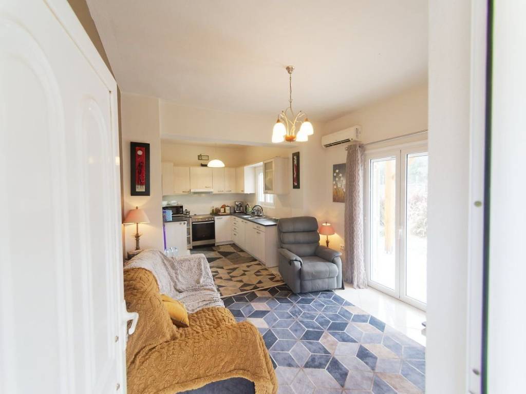 Choumeri - Rethymno A 55 m² detached house with a swimming pool and 1500 m² plot is available for sale in Choumeri, Rethymno. The house is in impeccable condition and it consists of a living room with an open plan kitchen, two bedrooms, one bathroom and one outdoor living area (sun room) completely closed with awnings. The house comes with a nice garden, a swimming pool and a garden shed. There is a wooden decking and space for sunbathing. The house and the garden are completely private with no other houses nearby. On the 1500 m² plot that is attached to the house there are 30 olive trees. The plot is completely fenced and it has 200 m² extra building rights. Some features of the property are: Log burner, electric heating, air conditioning throughout, flys screens throughout, aluminium shutters , double glazing . Solar panel water heater Solar panel fully lit outdoor areas, pergola with outdoor kitchen . Pergola that is fully waterproof. All papers are ready for a fast contract. Choumeri, which is within walking distance from the house, is a charming, traditional village with a mini market and a taverna. Perama with all basic utilities is 4 kilometers away. Panormo seaside villa is 10 kilometers away.