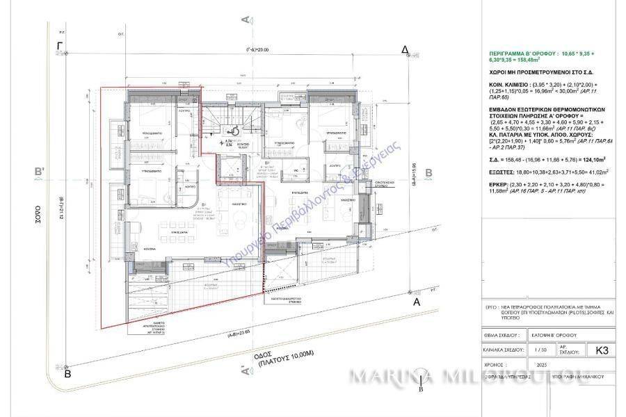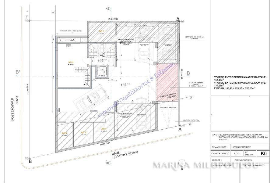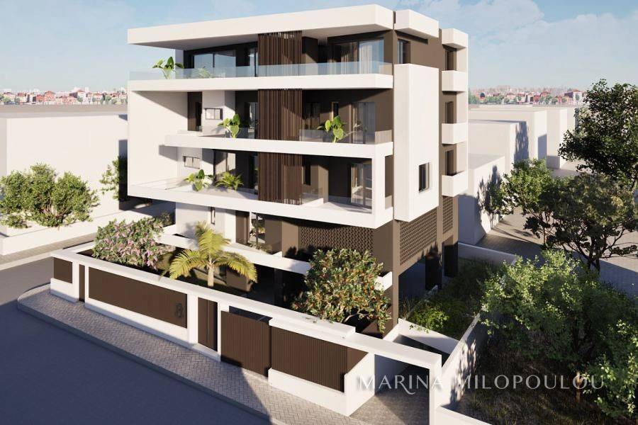 Glyfada, Pιrnari – in a buliding under construction (demolition stage), a corner, 2nd floor apartment, 86 sqm, Northeast orientation. The apartment features a reception / ΔΙΝΙΝΓ area, open-plan kitchen, 2 bedrooms, 2 bathrooms, a front-facing veranda (North), and 2 additional balconies for the bedrooms (East). It is part of a 4-storey building, with a total of 5 residences, energy efficiency class A+. The property includes autonomous natural gas heating, solar panels, provision for underfloor heating, oak flooring, and the option for the buyer to select construction/decoration materials. It also offers 2 parking spaces (one in the pilotis and one basement) and a 12 sqm. basement storage room. Zone price: €2,550/sqm. Located in a quiet residential neighborhood, at an elevated point near the foothills of Mount Hymettus, just 370 meters from the local market on Gounari Avenue, 2.5 km from Glyfada’s shopping area and the beach, 5 km from the Ellinikon Metropolitan Park, and 25 km from the intern airport. Estimated delivery: 02 / 2028.