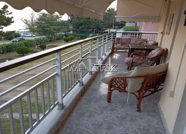 Chalkidiki, Metamorfosi, apartment second floor 52tm, in residential complex. consists of 1 room, living room with kitchen and 1 bathroom. has security door, aluminum frames with double glazing, screens, tents, marble floor and 2 air conditions. corner large balcony 17tm with view. distance from the center of the village 1km and distance from the sea only 30m.
