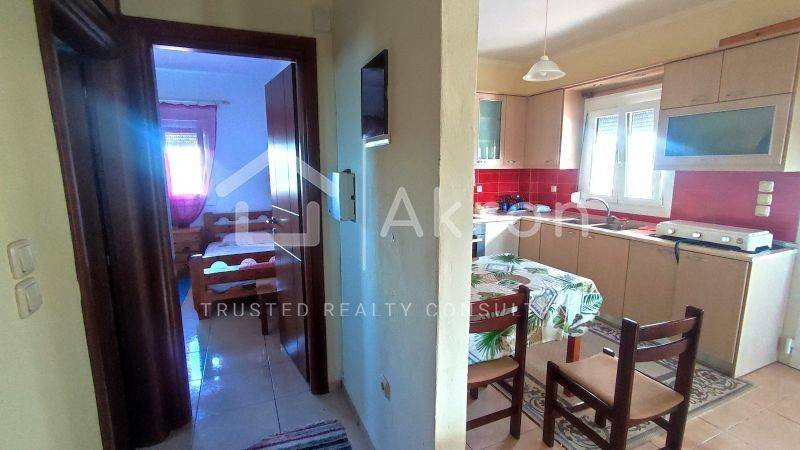 The detached house is a stone's throw from the settlement of Kalandra, is in excellent condition, and is built on a plot of 2,235 sq m. It consists of two levels (80 sq m each and not connected by an internal staircase), with the ground floor being in an unfinished state. It therefore can be configured according to needs, while the apartment on the first floor is in excellent condition and is configured into two bedrooms, a comfortable kitchenette, and a comfortable bathroom. The house is not electrified, has a private septic tank and water from the Kalandra network, while there are 20 olive trees on the plot. It is situated in a quiet location that offers privacy and has potential for improvement, including the construction of a swimming pool. Ideal holiday home for families, but is also suitable for exploitation in the summer months.