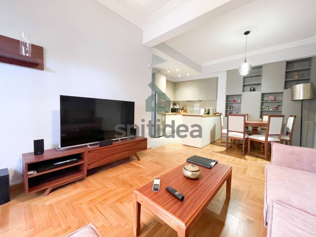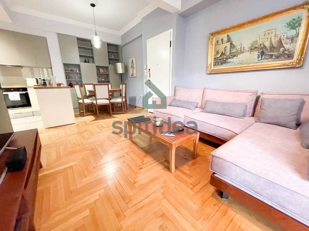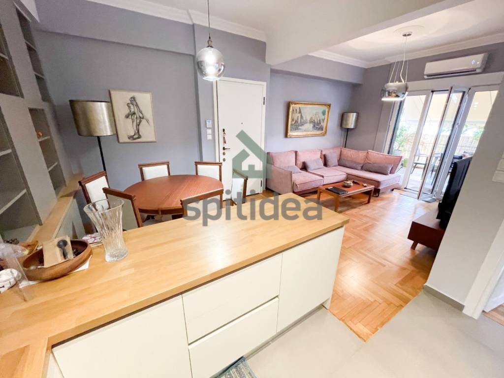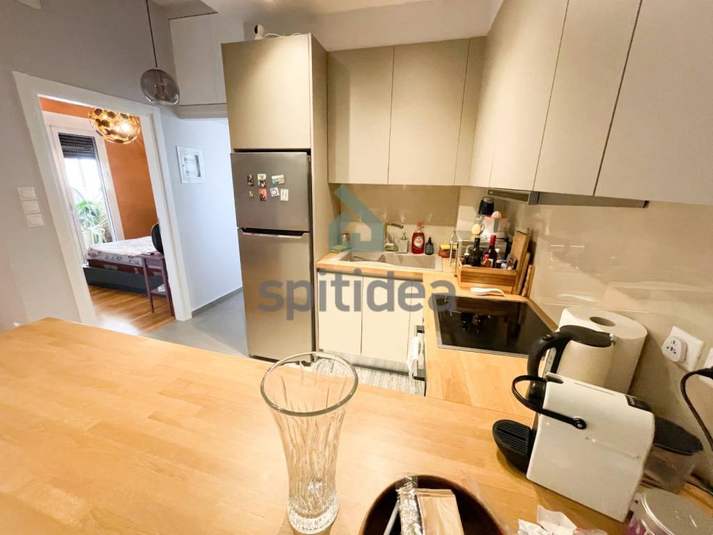 This is a fully renovated, furnished apartment of high aesthetics, with a total area of ​​50 sq m, on the 5th floor of a well-maintained building built in 1958. It consists of a comfortable living room with an open kitchen, 1 comfortable bedroom, a bathroom and a large terrace with awnings. It has a security door, aluminum frames with double glazing, screens, 2 state-of-the-art TOYOTOMI air conditioners that ensure the heating and cooling of the space, a 3m2 storage room, a solar water heater and an alarm. In addition, electrical household appliances (stove-oven, washing machine, refrigerator) with minimal wear are provided. The renovation has been done with very high quality materials, all electrical and plumbing installations have been changed and it is essentially a brand new house in which nothing needs to be done, while the building has also been upgraded (elevator upgrade, painting, new doorbells, etc.). Located near the center of Athens, it is also rented as an Airbnb and is an excellent investment option, except for home ownership of course.