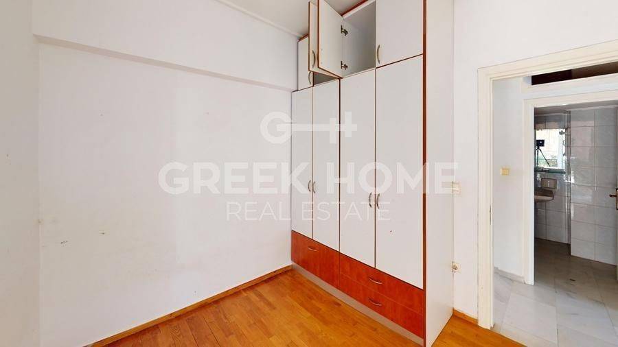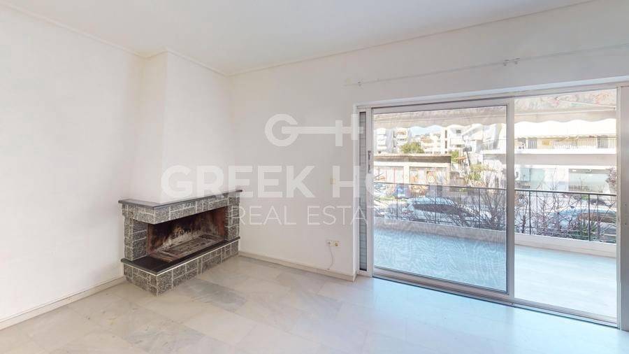 Glyfada, Terpsithea - Apartment 105sqm bedrooms 3, 1st, very good condition, year built 1993, energy class D, living room, kitchen, 2 bathrooms, heating type: autonomous (oil), air condition, quiet, dual aspect apartment, luminous, unobstructed view view, frontage, storage space, fireplace, balconies, large balconies, tents, elevator, loft storage, garden, built in appliances, aluminum frames, double glazed windows, door screen, wood & marble floors, secure door, alarm, video doorbell, internet, pets allowed, close to market (up to 200m), close to square (up to 500m).