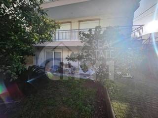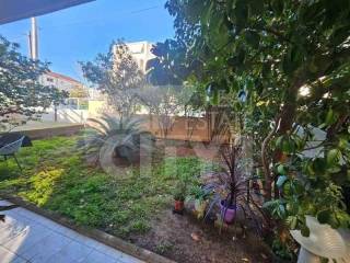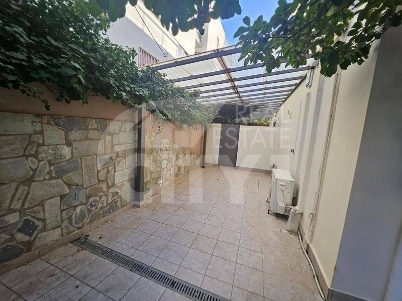Glyfada, Pyrnari - Apartment 90sqm fully furnished, bedrooms 2, levels 1, ground floor, excellent condition, year built 1990, energy class E, living room, hall, kitchen, bathroom, heating type: autonomous (electricity), quiet, dual aspect apartment, luminous, unobstructed view view, frontage, storage space surface area 1sqm, balconies, balcony 1sqm, garden, aluminum frames, door screen, wood floors, separate kitchen, secure door, pets allowed, residential zone, east-western orientation, close to θάλασσα (up to 0).