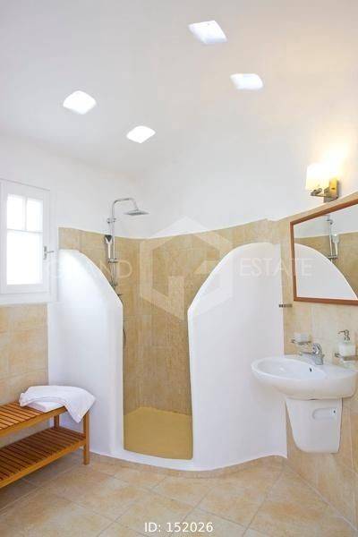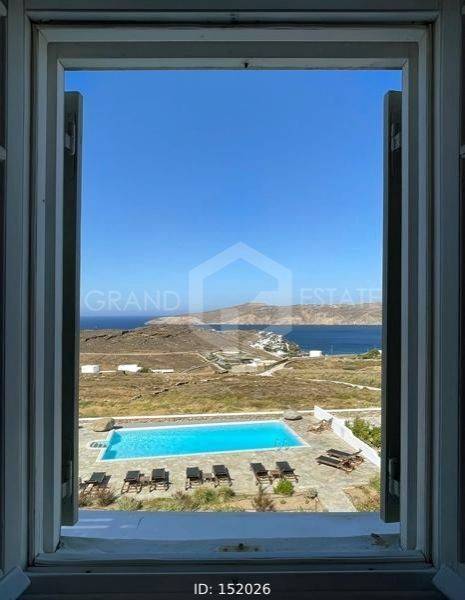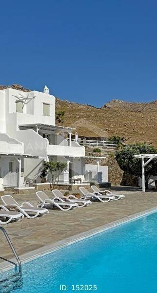 Mykonos, Panormos - Studio 45sqm plot 4050sqm, fully furnished, bedroom, ground floor, excellent condition, year built 2006, energy class D, living room, kitchen, bathroom, heating type: autonomous (electricity), air condition, a/c type vrv, quiet, luminous, sea view, frontage, painted, boiler, balconies, large balconies, tents, garden, built in appliances, wooden frames, double glazed windows, door screen, ceramic tiles floors, surveillance cameras, luxurious, swimming pool, barbeque, satellite, internet, residential zone, access from asphalt, investment property. Wonderful Superior studio in a complex of 12 houses, with a large mature shared garden with a chapel, a large usable swimming pool, shared bbq, outdoor bathrooms & showers. The studio has a large terrace with a view of the pool and the sea, an open-plan living room, dining area and kitchen, bedroom and a traditional Cycladic bathroom with shower. It has air conditioning, a boiler for hot water, is fully furnished and equipped with electrical appliances (flat screen TV, iron, kitchenette, small fridge, hairdryer, coffee maker. It is located in the beautiful bay of Panormos, in the northeastern part of the island, just 10 minutes by car (or motorbike) from Mykonos town or the airport and 15 minutes from the famous beaches of Elia and Super Paradise. Panormos beach, just a 10 minute walk away, named after the bay, is one of the few beaches on the island that remains truly unspoilt. It has a nice long strip of white sand with crystal blue waters and enjoys a little more protection from the winds. The property is tidy, ready for installation or exploitation. Ideal for a holiday home and high yield investment.