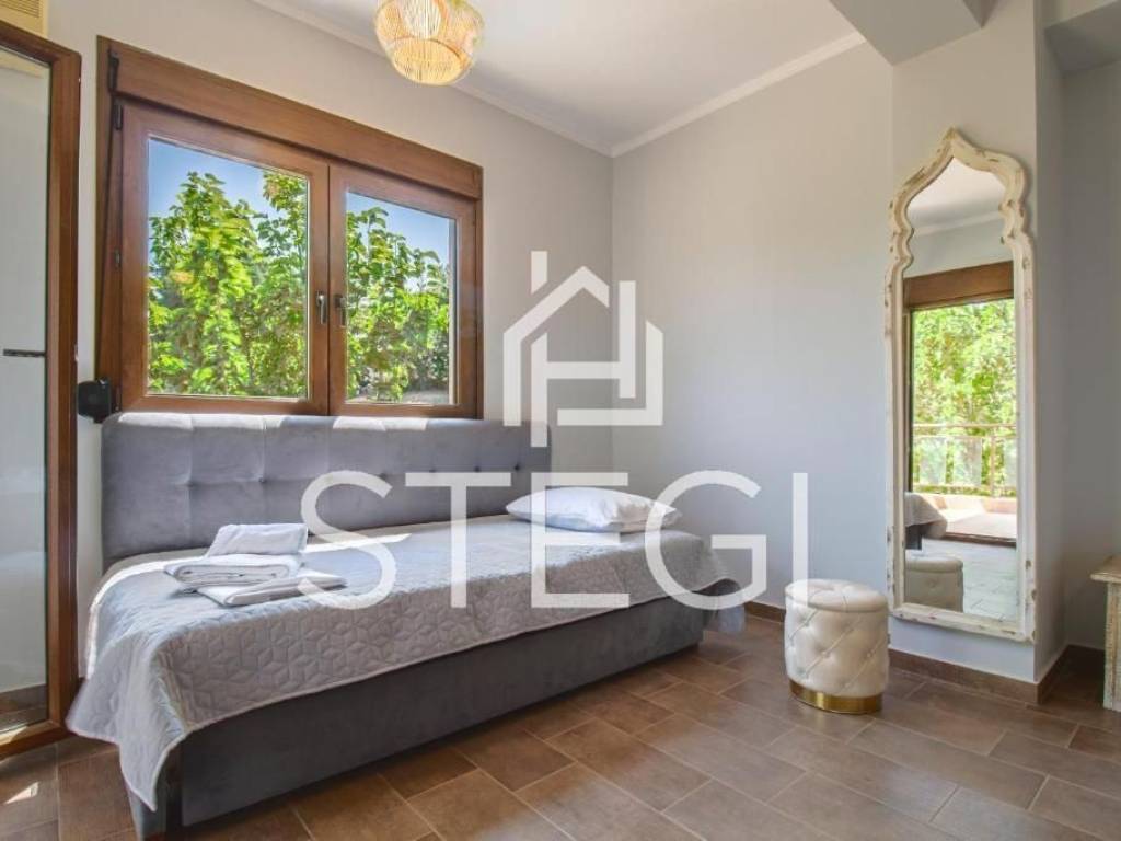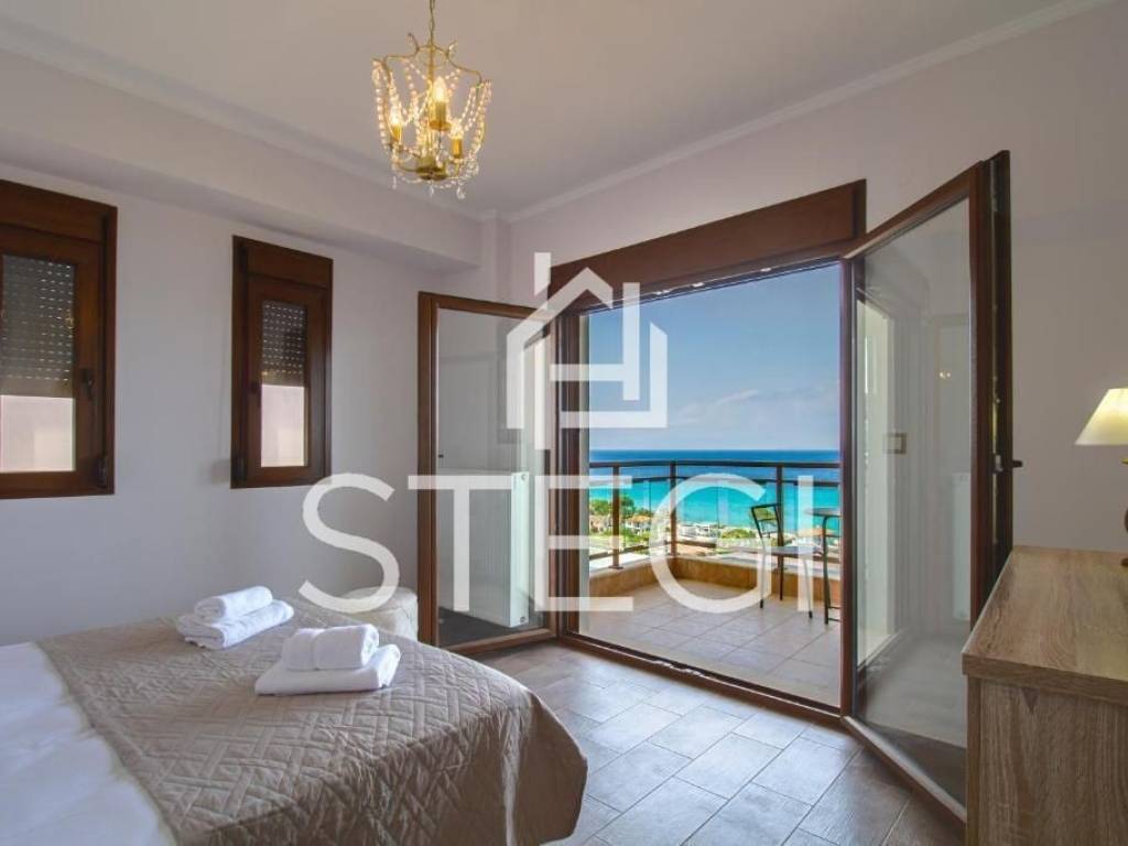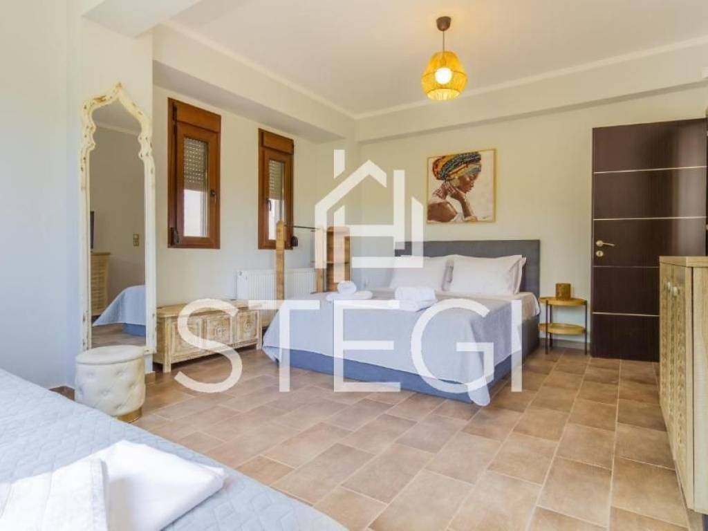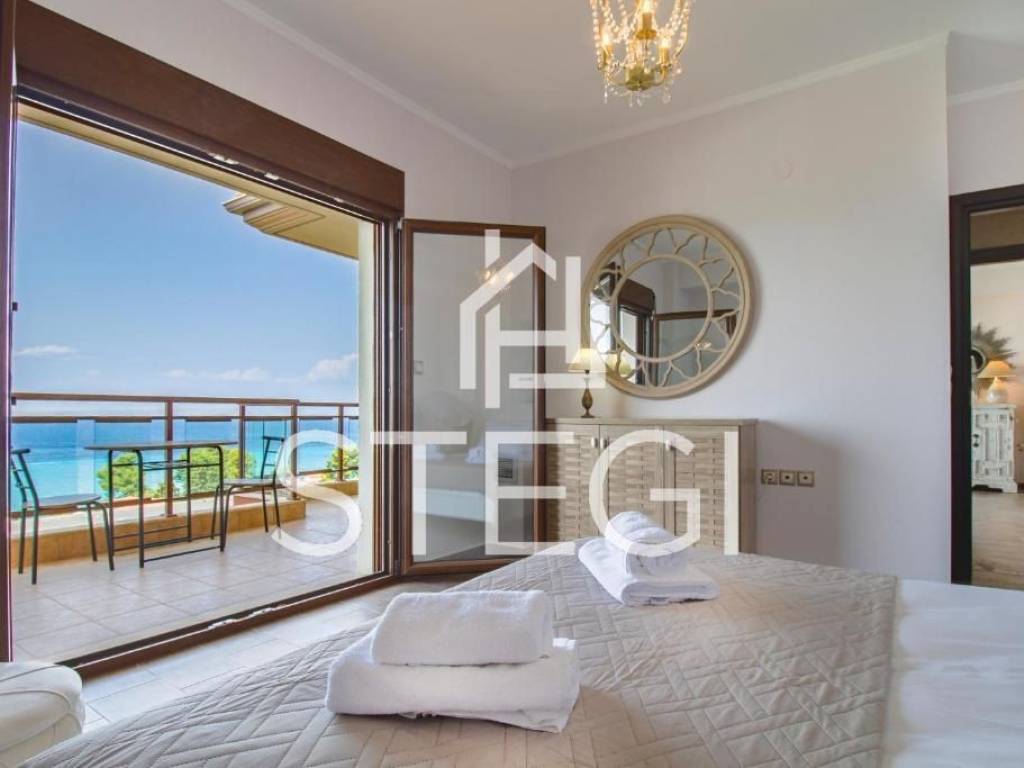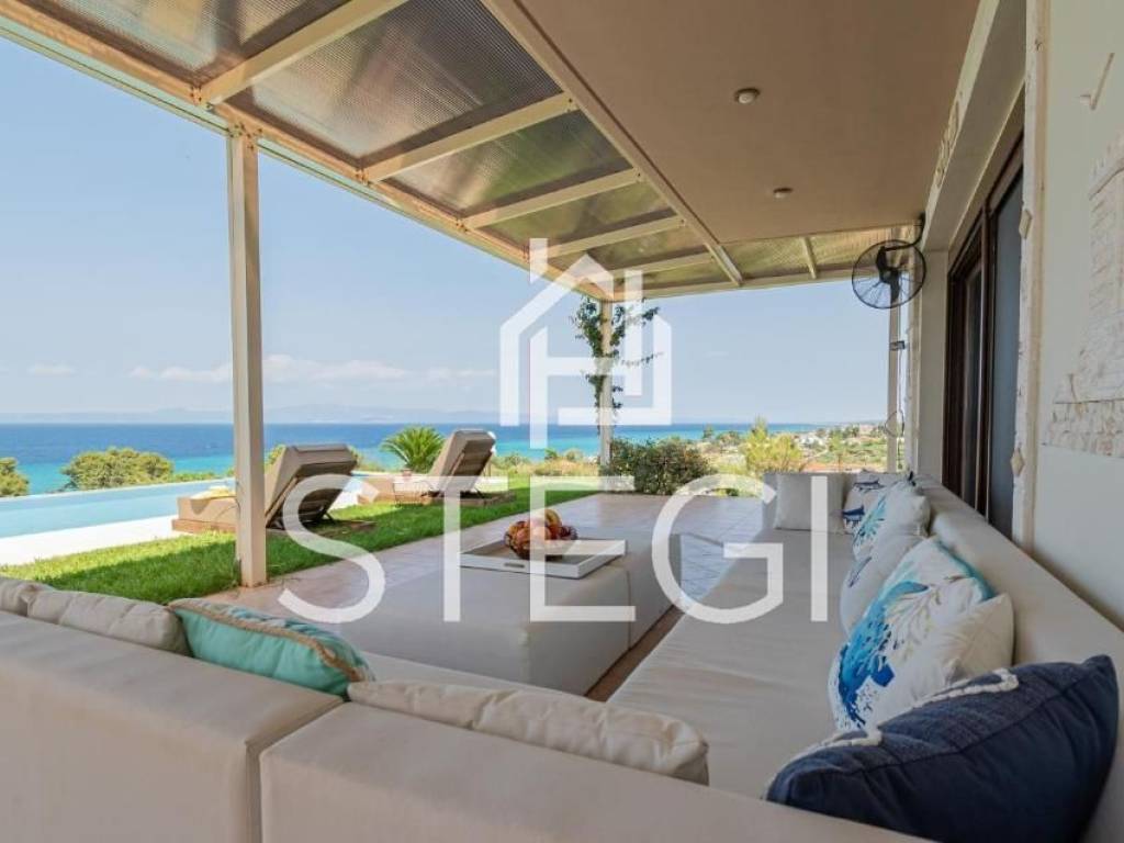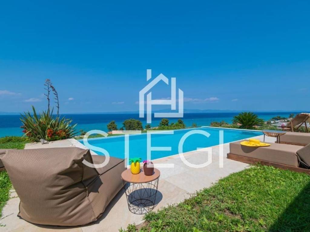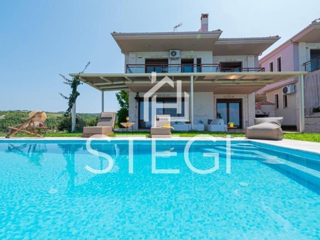 RESIDENCE Location - CHANIOTI ( 1000m from the beach, 800m from the village center ) In Chanioti, one of the most sought-after destinations in Chalkidiki, a contemporary villa offered for sale, just a 7-minute walk from the beach. The property enjoys convenient access to the center of village. The villa has a total area of 240 m² and comprises three floors with a total of five bedrooms, a living room-kitchen and two bathrooms, providing comfortable accommodation for a family or guests. The villa is arranged over three levels; two bedrooms are located on the lower level. The interiors enjoy a particularly impressive sea view. The unobstructed view of the blue Aegean Sea creates a sense of calm and fills the home with natural light throughout the day. The outdoor area features a private swimming pool, designated seating and barbecue area, and a well-maintained garden. Additional advantages include a private on-site parking. The property is fully equipped and ready for immediate occupancy, offering air conditioning, a fully fitted kitchen with modern appliances including a dishwasher and a washing machine. The layout is practical and thoughtfully designed, with bright and comfortable living spaces. This villa represents an excellent opportunity both for personal use and as an investment for short-term rentals, as Chanioti consistently demonstrates strong demand due to its developed infrastructure and pristine beaches. Square meters – 240m2 Plot area – 1500m2 Construction year - 2010 Flat description: Kitchen-living rooms, 5 Bedrooms, 2 bathrooms, COMFORTS o Cooling - heating air conditioning o Security system o Mosquito Nets ο Fireplace o Italian doors o Italian Kitchen o Armored door o Double Glazed Synthetic Windows o Satellite tv ο Storage Spaces o Fully equipped and furnished SURROUNDINGS o Outdoor lighting o Perimeter fencing o Greenery o Swimming Pool o BBQ o Balconys o Easy Access o Parking space
