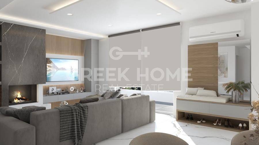 Neo Psychiko, Agia Sofia - Floor Apartment 105sqm bedrooms 3, 4th, under construction, year built 2025, energy class A+, living room, kitchen, 2 bathrooms, heating type: individual unit (heat pump), parking covered,2, quiet, dual aspect apartment, luminous, unobstructed view view, frontage, painted, electric roller shutters, storage space 9sqm, external thermal insulation, balconies, large balconies, elevator, thermal shut-off frames, double glazed windows, door screen, wood floors, handicap ramp, luxurious, under floor heating, south-eastern orientation, close to metro/train (up to 1500m).