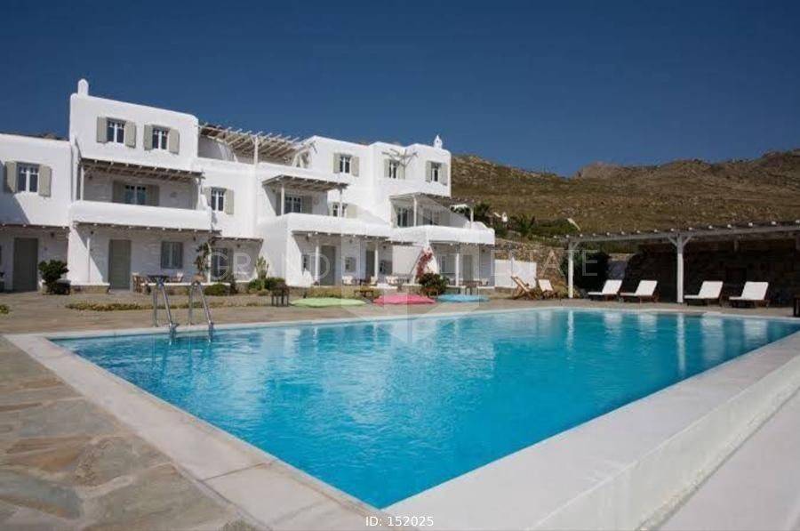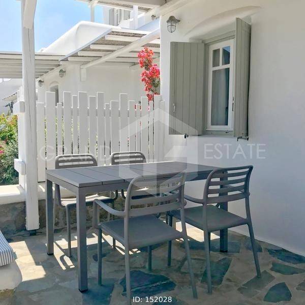 Mykonos, Panormos - Apartment 78sqm, plot 4050sqm, fully furnished, 2 bedrooms, ground floor, excellent condition, year built 2006, energy class D, living room, kitchen, bathroom, heating type: autonomous (electricity), air condition, a/c type vrv, quiet, luminous, sea view, frontage, painted, boiler, balconies, large balconies, tents, garden, built in appliances, wooden frames, double glazed windows, door screen, ceramic tiles floors, parking, surveillance cameras, luxurious, swimming pool, barbeque, satellite, internet, residential zone, access from asphalt, investment property. Wonderful apartment 78m2 in a complex of 12 residences, with a large mature shared garden with a chapel, a large usable swimming pool, shared bbq, outdoor bathrooms & showers. The apartment has a large terrace with a view of the pool and the sea, an open-plan living room, dining area and kitchen, 2 bedrooms and a bathroom with a bathtub. It has air conditioning, a boiler for hot water, is fully furnished and equipped with electrical appliances (flat screen TV, iron, kitchenette, small fridge, hairdryer, coffee maker. It is located in the beautiful bay of Panormos, in the northeastern part of the island, just 10 minutes by car (or motorbike) from Mykonos town or the airport and 15 minutes from the famous beaches of Elia and Super Paradise. Panormos beach, just a 10 minute walk away, named after the bay, is one of the few beaches on the island that remains truly unspoilt. It has a nice long strip of white sand with crystal blue waters and enjoys a little more protection from the winds. The property is tidy, ready for installation or exploitation. Ideal for a holiday home and high yield investment.