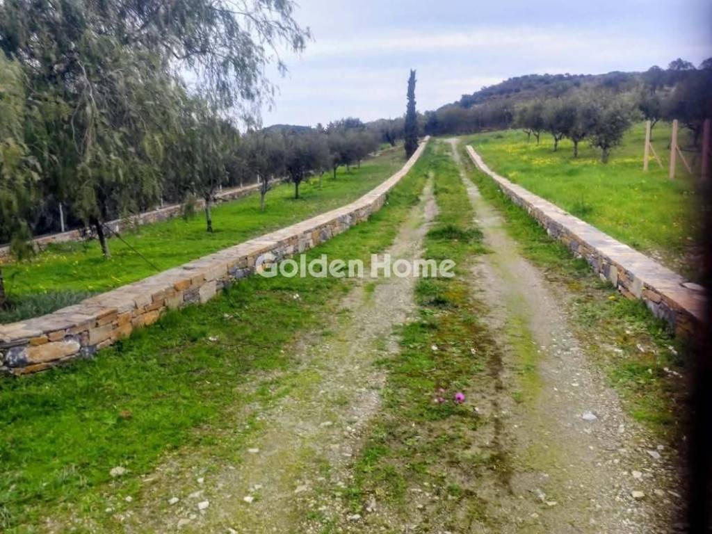 Plot of land 6400 sq.m. even, buildable, corner, facade, near the Kouvara equestrian club. With building permit 200 sq.m. stone fence and entrance, internal layout of flat roads. It has water and electricity supplies, extensive internal irrigation network, automatic watering throughout its surface, extensive perimeter lighting. It also has a container, barbecue, pergola, chicken coop and tractor. It has 65 olive trees, 30 fruit trees and various ornamental trees. For Sale, plot, Living Area: 6400 Sqm, View, Slope: Inclining, Building Coefficient: 0.4, Road Type: Asphalt, Zoning: Residential, Coverage Ratio: 0.4, Orientation: S, Facade Length: 72