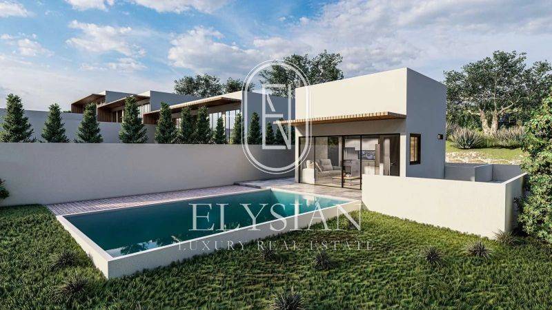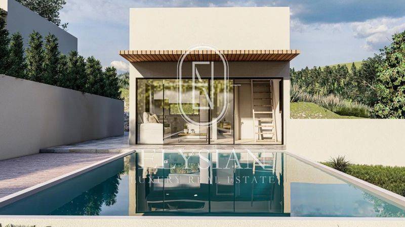 Property Code: ELS1508 - Villa FOR SALE in Sithonia Center for € 215.000 . This 80.00 sq. m. Villa consists of 2 levels and features 3 Bedrooms, Livingroom, Kitchen, 2 bathrooms . The property also boasts Heating system: Fan coil, tiled floor, unobstructed view, Window frames: Aluminium, Armourplated door, parking, garden, swimming pool, A/C, open space. The construction begun in 2025 Plot area: 1001 s.q. . Building Energy Rating: A+