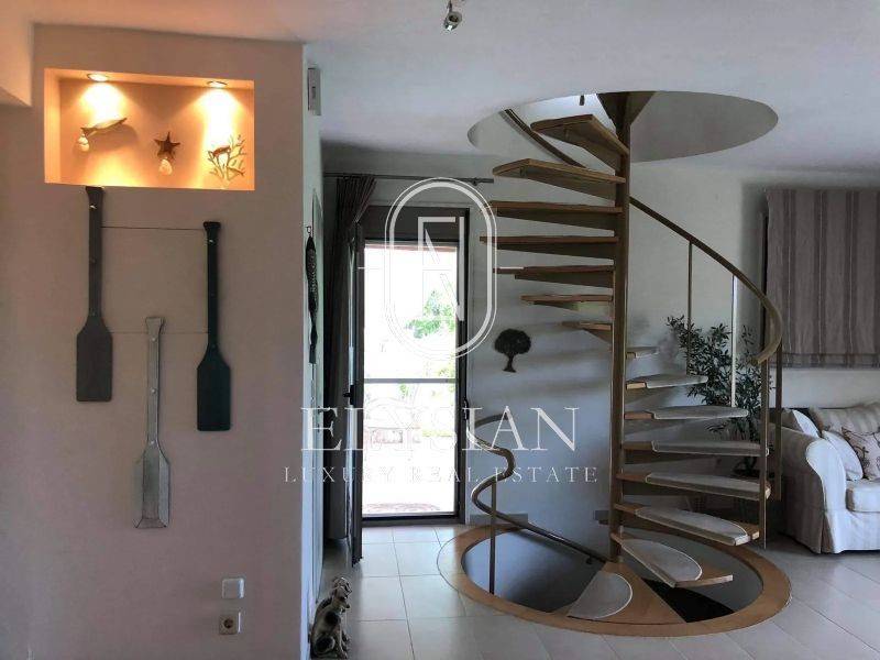 Property Code: ELS1509 - House FOR SALE in Pallini Pefkochori for € 750.000 . This 160.00 sq. m. furnished House consists of 3 levels and features 3 Bedrooms, Livingroom, Kitchen, 2 bathrooms . The property also boasts Heating system: Autonomous heating - Oil, tiled floor, view of the Sea, Window frames: Aluminium, Armourplated door, parking, a storage unit sqm, garden, fireplace, swimming pool, A/C, playroom, open space, internal staircase. The building was constructed in 2008 Plot area: 820 s.q. . Building Energy Rating: A Distance from sea 100 meters,