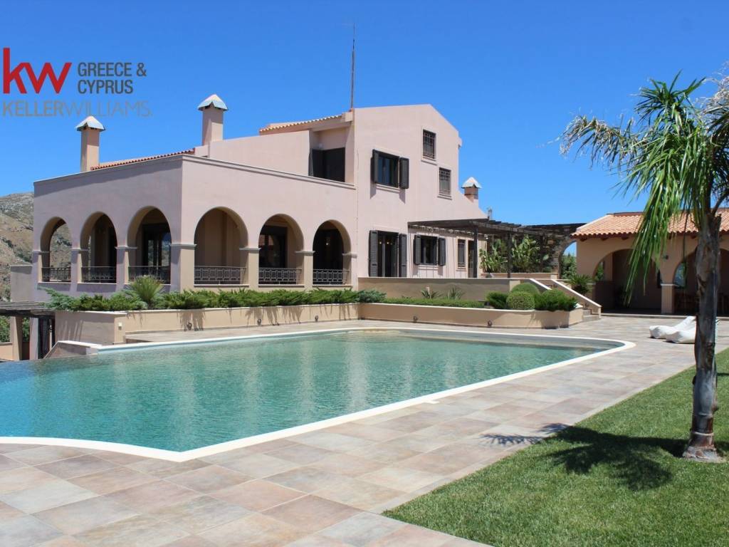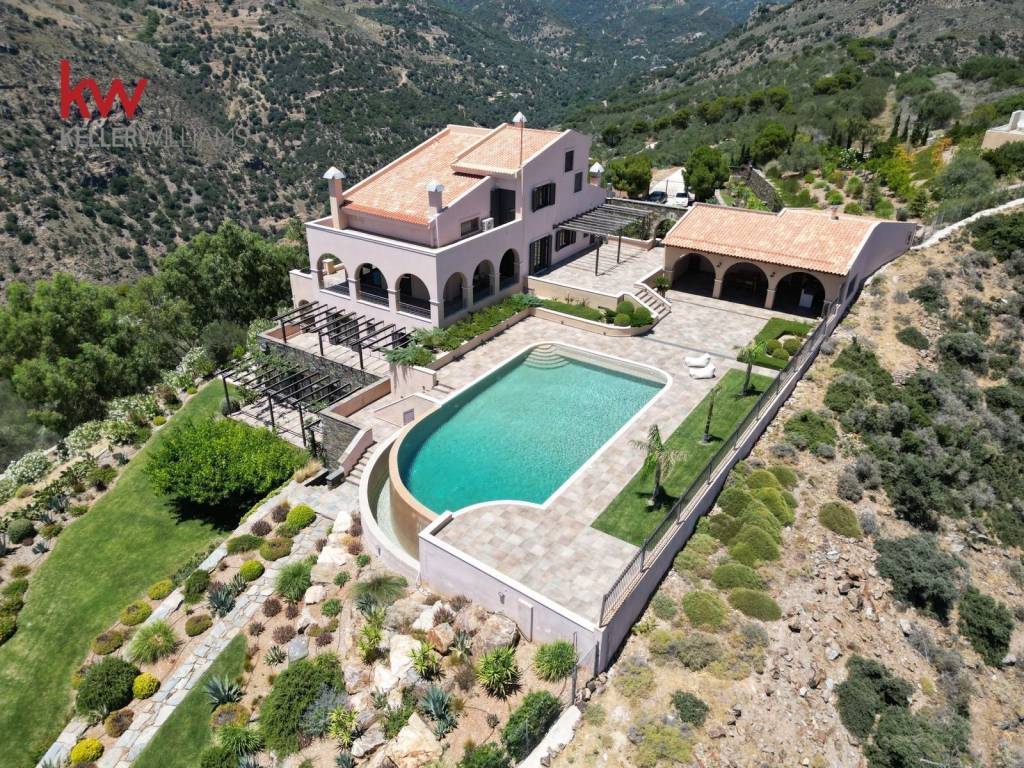 Luxury Villa for Sale EXCLUSIVELY BY KELLER WILLIAMS CRETAN PROPERTIES in Akisares, Sarakina Selinou. In the idyllic area of Sarakina-Selinou, an extraordinary villa combining luxury fully furnished with comfort is offered for sale. This unique residence is situated on a spacious plot of 19,584.82 sq.m. with a total area of 928,84 sq.m.and together with the semi-outdoor spaces it reaches approximately 1,004 sq.m. spread across four levels. Access is provided via a private road due to its location at the peak of Mount Akisares, surrounded mainly by olive trees, offering the most breathtaking unobstructed views of the surrounding area and the Libyan Sea. With a functional and luxurious layout, the villa features 4 levels of different main and auxiliary spaces interconnected by an internal staircase and includes an elevator infrastructure in semi-finished condition. The semi-basement includes indoor parking for two, a gym, a laundry and cleaning area, a boiler room, a central storage area, a cellar, and a a hall intended for sports use (squash etc.). One level up, there are 4 spacious bedrooms each with en-suite bathrooms, a living room, a comfortable office space, an energy-efficient fireplace, and a kitchen, ensuring ultimate comfort for you and your guests. The main entrance leads to the central area featuring a spacious, bright living room with a comfortable dining area and an energy-efficient fireplace offering warmth and coziness, as well as a well-equipped kitchen with an island, internal storage, and side access to the outdoor pool courtyard, providing limitless possibilities for cooking, entertainment, and relaxation. The internal staircase leads to the topmost level where the master bedroom with a loft and a large comfortable bathroom is located, along with an additional bedroom with a WC, offering absolute comfort and privacy. Modern and energy-efficient performance is ensured with external thermal insulation, aluminum frames with double-glazed energy windows, solar water heater, autonomous heating with oil radiators, and the villa's energy fireplaces, while air conditioning provides ultimate comfort throughout the year. Additionally, it includes a ground-floor self-contained apartment featuring an open-plan living and kitchen area with a private fireplace, leading to a private garden, a comfortable bedroom, and a bathroom offering peace, tranquility, and endless sea views. The high aesthetic decoration, construction quality, and excellent condition of the villa evident in all levels of interior and exterior spaces make it an exceptional buying choice, combining traditional aesthetics with modern luxury. The outdoor spaces consist of a protected area for dining, recreation, and relaxation in front of the 135 sq.m. pool, paved courtyards, and impeccably landscaped gardens on different levels, offering a unique view of the sea and mountains with a southern orientation ensuring ample light throughout the day. The distance from the beach of Paleochora is only 6 km, making the location ideal for seaside excursions. The luxury residence is equipped with controlled entry, closed-circuit surveillance cameras, a security door, ensuring your utmost protection. Furthermore, the entire area is supplied with private and autonomous water supply due to a borehole pumping system. This unique villa is the ideal choice for those seeking a luxurious residence with absolute privacy in one of the most beautiful areas of Crete, offering comfort, safety, and stunning views. Don't miss the opportunity to acquire this wonderful property! Sarakina, a picturesque and tranquil area in Pelekanos, Crete, offers a unique opportunity for those seeking ultimate peace and natural beauty. It is located close to Paleochora, one of the most beautiful coastal towns on the island, known for its magnificent beaches and crystal-clear waters. The area is surrounded by lush hills and offers panoramic views of the sea and mountains. The natural beauty of the area is ideal for nature lovers and tranquility seekers, with a Mediterranean climate featuring mild winters and warm summers, making it perfect for year-round living. The traditional village is the perfect destination for those wishing to enjoy Cretan hospitality, traditional culture, and the effortless beauty of the island. It is ideal for those looking for a quiet country residence or an investment in an area with increasing demand and value. Sale Price €2,750,000. For more information and to schedule a visit, please contact the Website: kwcp.gr Phone: +30 6974521524 Email: m.lakiotaki@kwgreece.gr