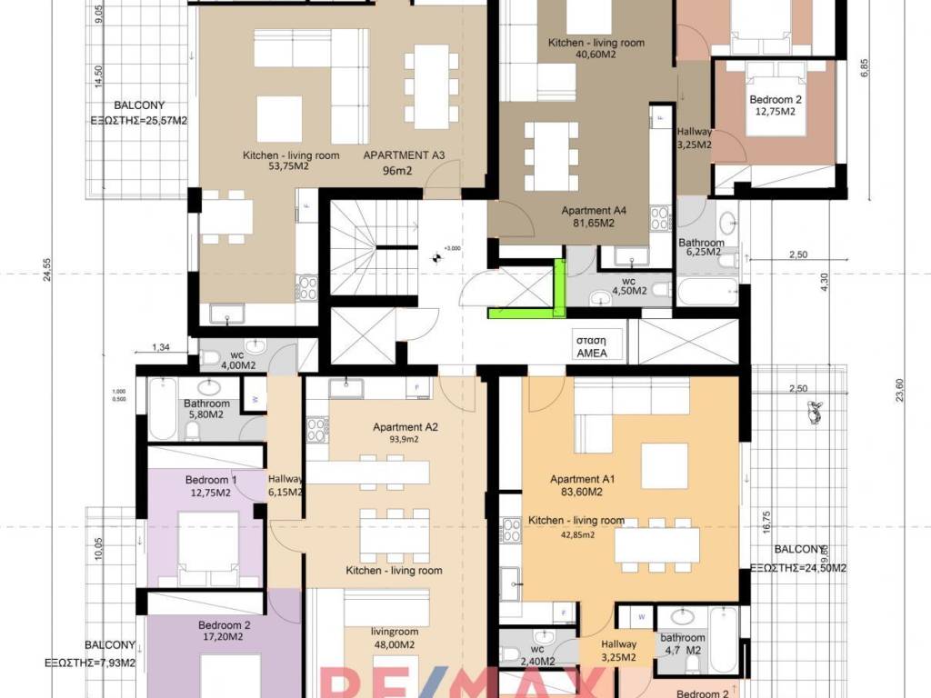 Apartment For sale, floor: 1st, in Elliniko. The Apartment is 84 sq.m.. It consists of: 2 bedrooms, 1 bathrooms, 1 wc and it also has 1 parkings (1 Underground). The property was built in 2025. Its heating is Autonomous with Heat pump, Underfloor heating, Air conditioning, Solar water system, Boiler are also available, it has Alluminum frames, the energy certificate is: A+. The property's status is: New development, it is close to Metro, Luxury, it is suitable for Investment and it also has the following unique features and advantages: Elevator, Storage, Security door, CCTV, Security alarm. Remax Central, contact phone: 2106440020, email: info@remax-central.gr, website: www.remax-central.gr