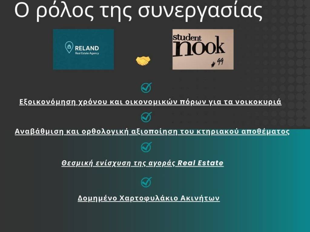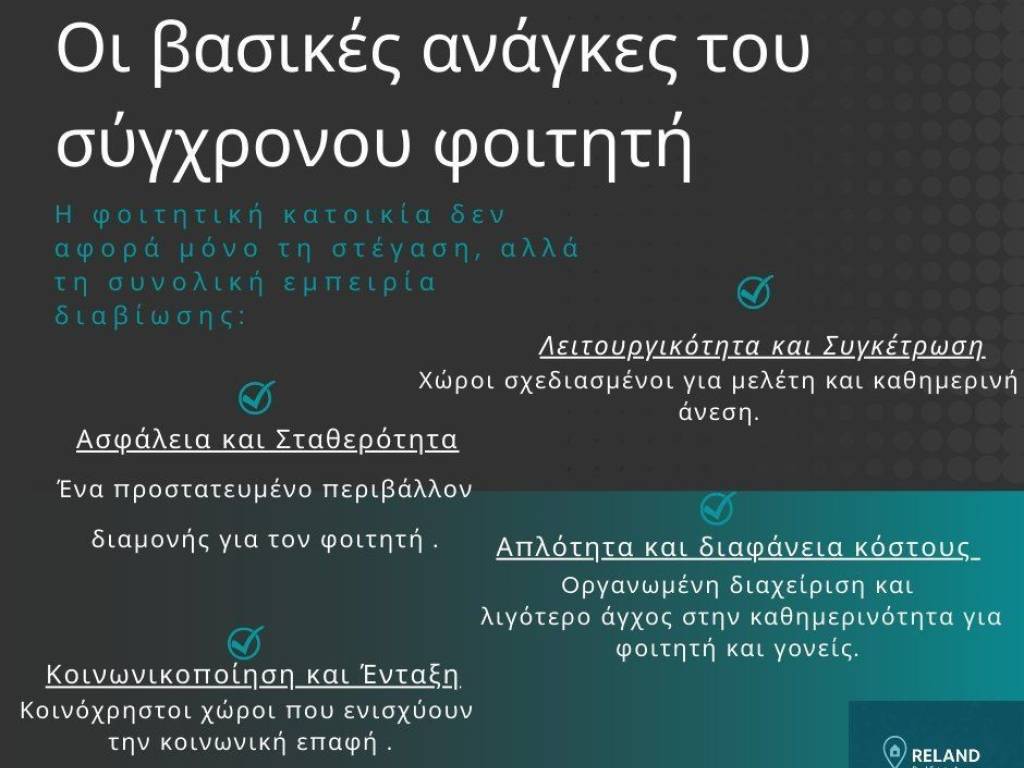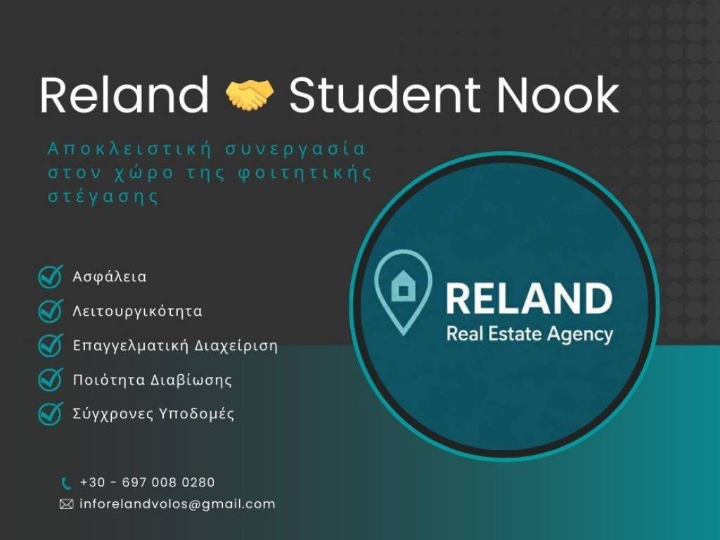 RELAND Studio apartment for rent, 39 sq.m., ground floor, fully furnished, in the Epτά Platania area in Volos. Fully furnished + electrical appliances All utilities included in the price (electricity, water, Internet) Energy-efficient aluminum frames Security door Inverter air conditioning Shared study areas Shared washing machines & dryers The perfect student choice, with all expenses in one package, no extra charges. Located near the Polytechnic schools, close to a city bus stop and supermarkets. Only 10 minutes from the center of Volos. For more information or to schedule a viewing, contact us at: +30 697 008 0280