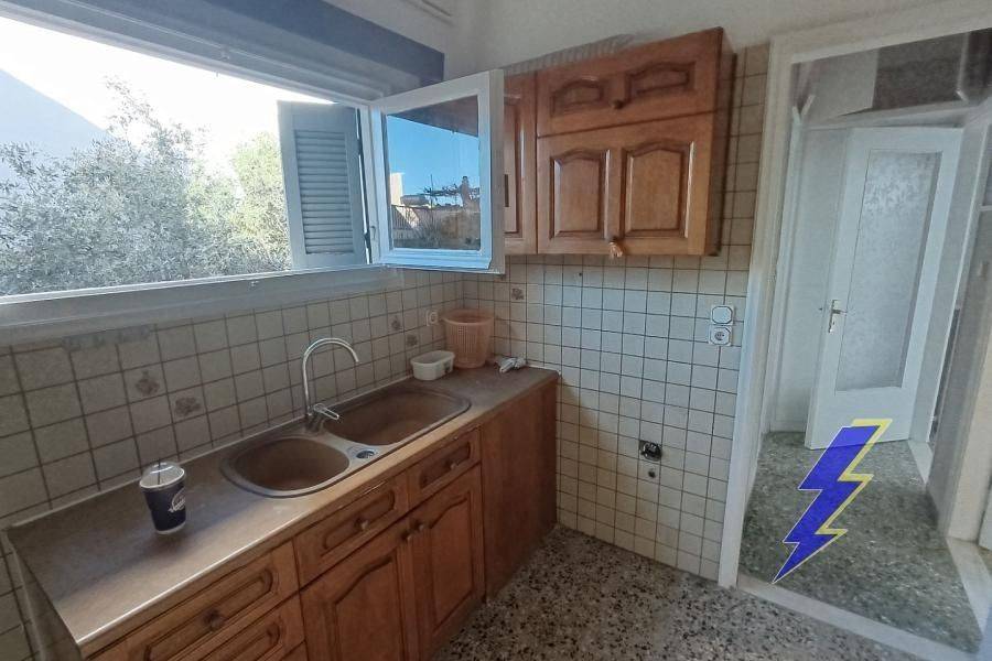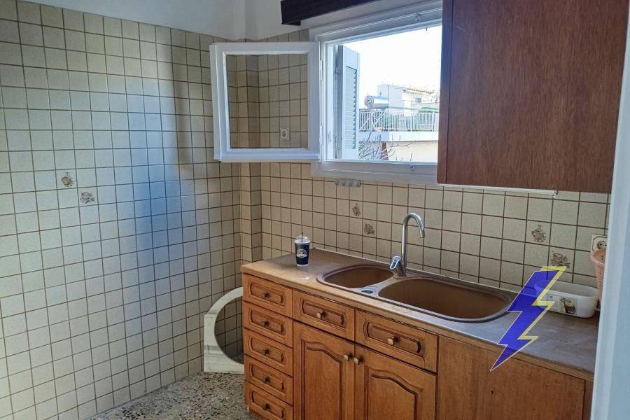 Keratsini, Apartment,, Rental, 58 sq.m, year built 1980, renovated in 2001, 1 rooms, Ground Floor, Availability: Available, Condition: very good condition, Floor type: Mosaic, Tiles, Window frames: Wooden, Energy class: E, Zoning: Residential, Position: Corner, Dual-aspect, Frontal, Inclination: Level, Access from: Asphalt, Electricity: Three-phase, Includes: Bathroom, Loft, near urban, public transport, Solar water heater, Suitable for: Students, Characteristics: angular, balcony, bathroom with window, Bright, built in closets, close to public transport, level, loft, no elevator, no pets, painted, solar water heater, transparent, without utilities. property ID: 3159