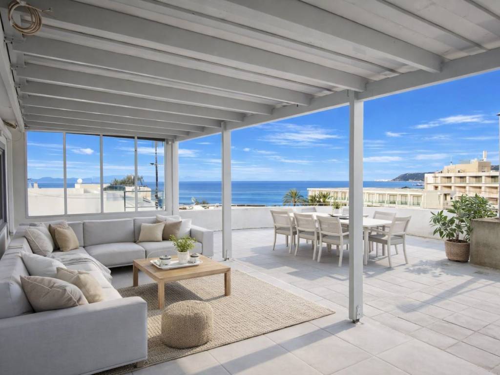 Modern Beachfront Penthouse with Panoramic Sea Views Welcome to this beautifully renovated 50 sqm penthouse apartment, perfectly positioned on the beachfront in popular Ialysos Bay. Located on the 3rd floor, this bright and stylish one-bedroom residence offers uninterrupted views over the Aegean Sea as well as the iconic Filerimos mountain — creating a unique setting where breathtaking sunsets become part of everyday living. Fully renovated in 2026, the apartment combines contemporary Scandinavian elegance with Mediterranean light. The interior features an open and airy living space, a comfortable bedroom with stunning sea views, and a modern kitchen and bathroom designed for effortless coastal living. Large openings allow natural light to flow throughout the home while framing the surrounding landscape. The penthouse terrace is a true highlight — ideal for relaxing, entertaining, or simply enjoying the magical sunset horizon over the water. The apartment comes unfurnished.