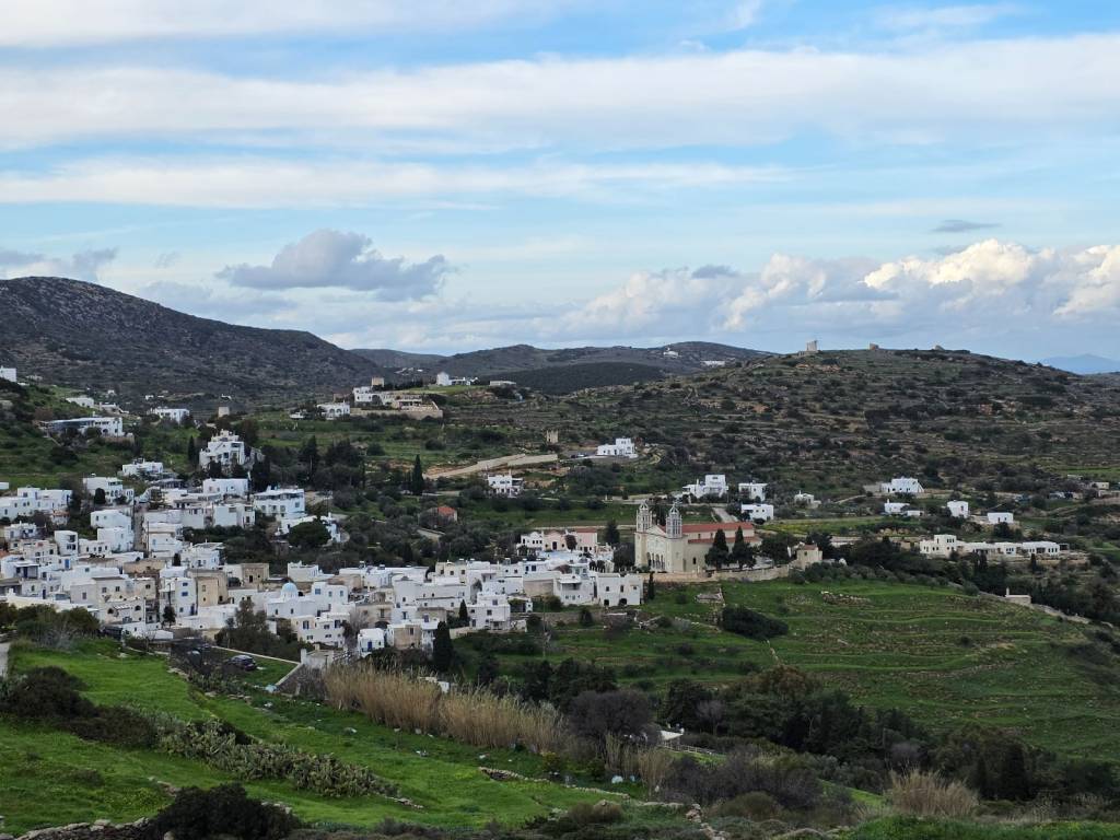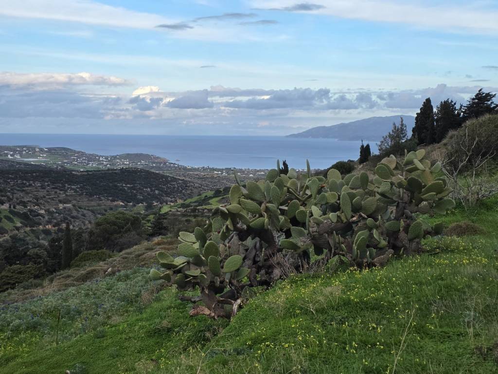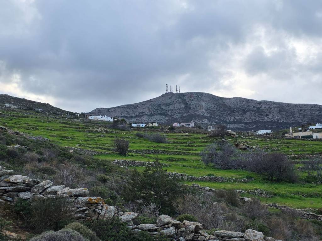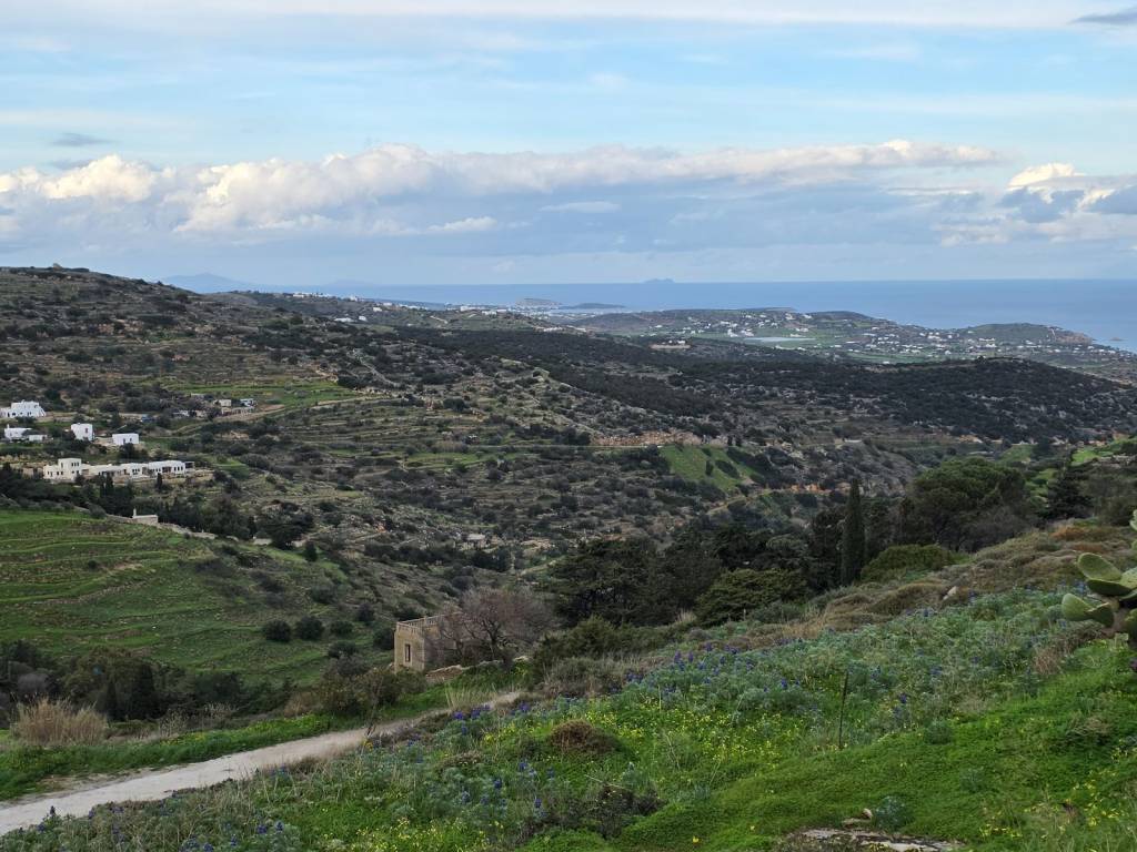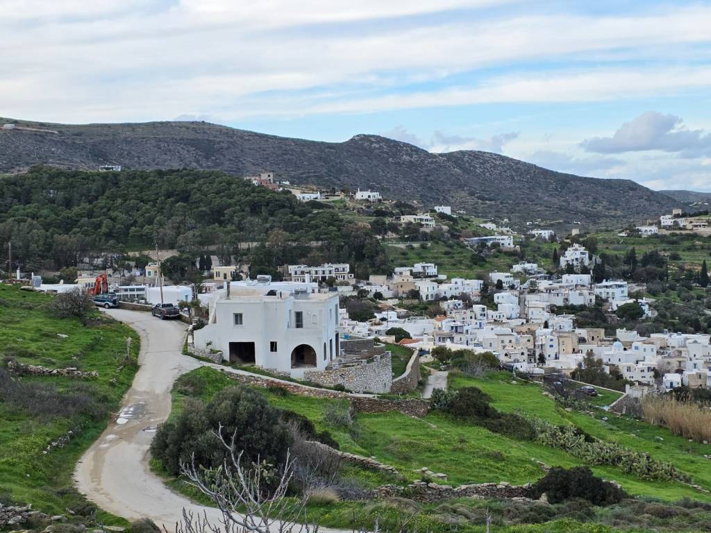 4.000 sq m. plot on a slope in Lefkes. Amphitheatrical, in a quiet location, with unobstructed views of the village and the Sea With pre-approval of a building permit for a 100 sq m. house.