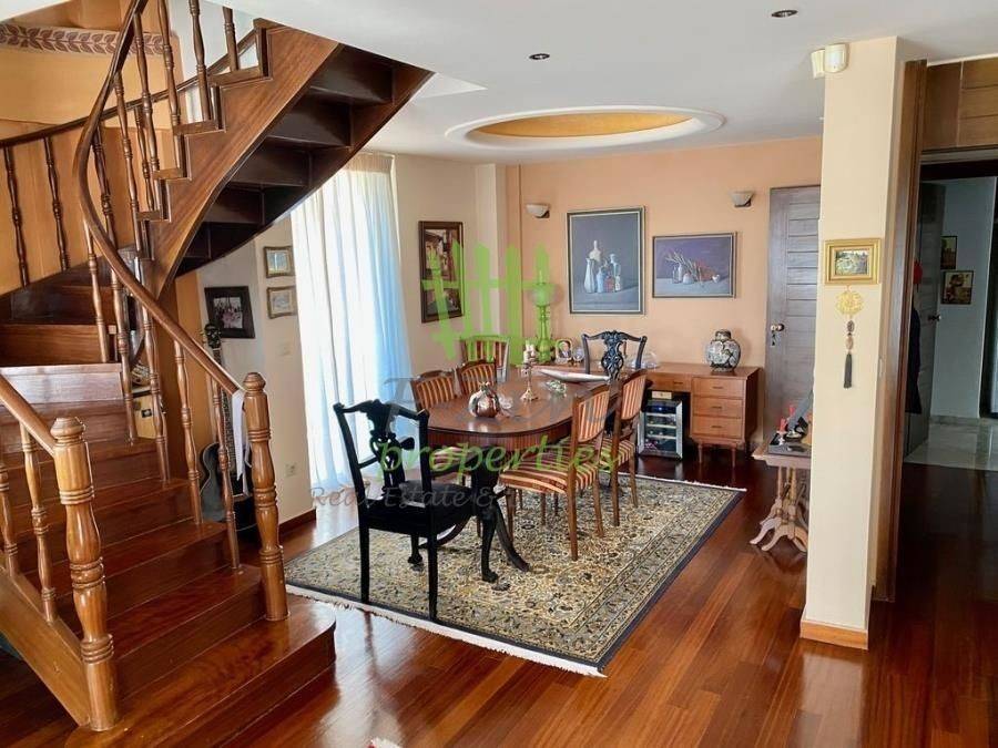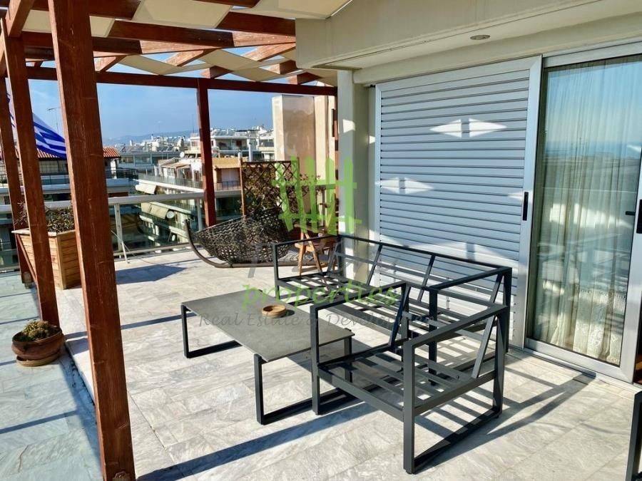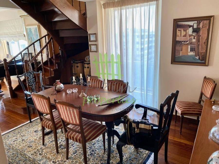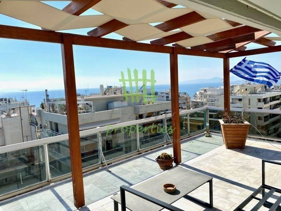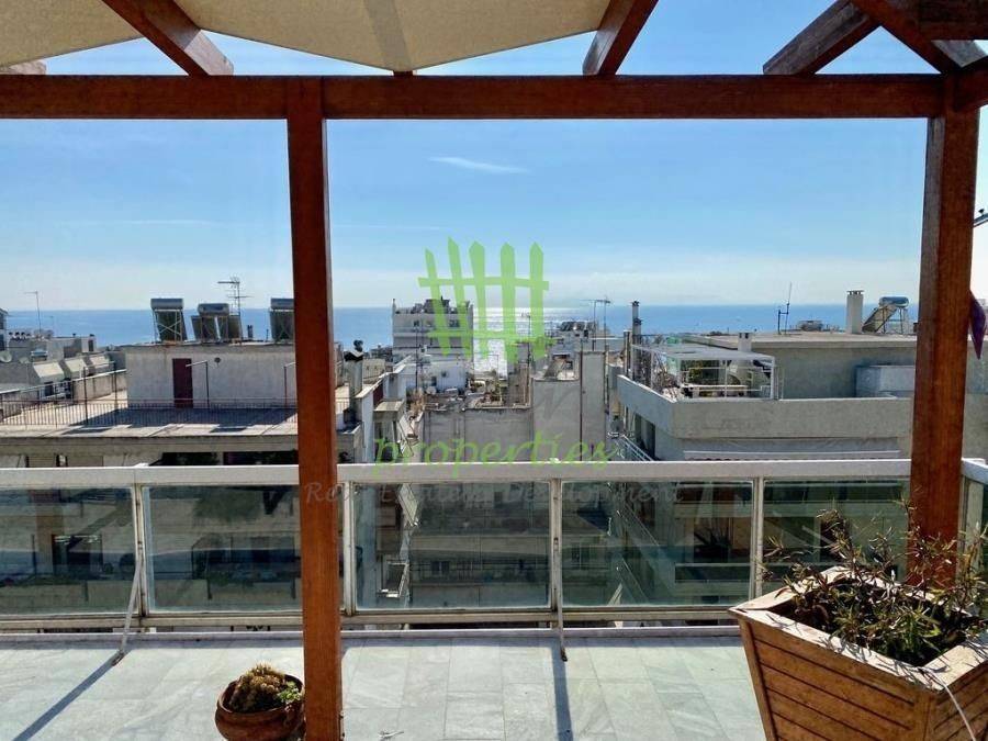 Luxury maisonette penthouse, consists of 3 levels, 6th floor 100sqm with large living-dining room with fireplace, kitchen, utility room-laundry, 2 WC, 7th floor 105sqm with living-office, 1 large master bedroom with bathroom, 2 bedrooms and a large bathroom, a 25 sqm roof with a small kitchen, a small bathroom with a shower, a bedroom and a large landscaped terrace-terrace for exclusive use with a pergola and bbq and an unlimited sea view. The elevator goes up to the 7th floor. In the basement there is a large warehouse with 2 rooms and a window and natural light, ideal for a guest house or gym and there are also 2 parking spaces outside with electrical charger. Rare and valuable property in an excellent location in Paleo Faliro close to trams, transport, market, Flisvo and Batis beach and Flisvo Marina and SNFCC, excellent investment