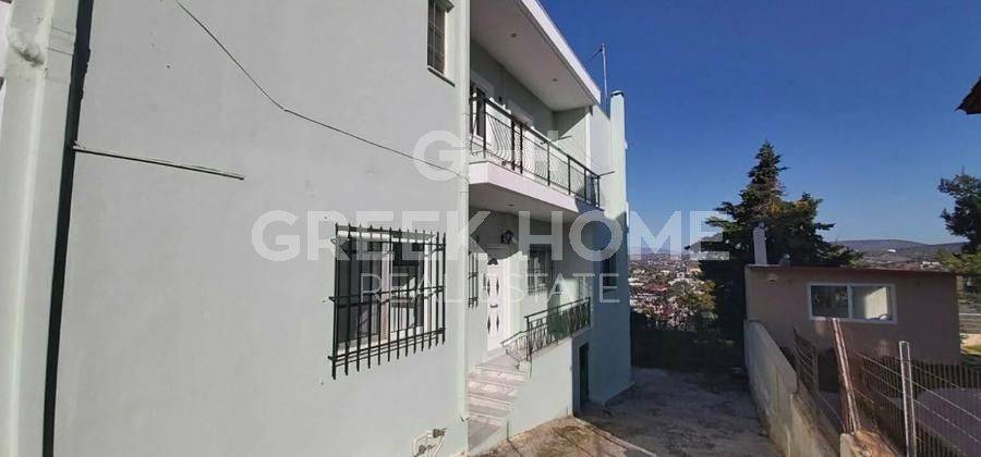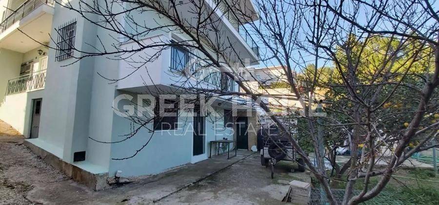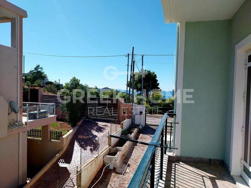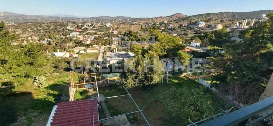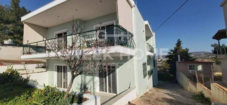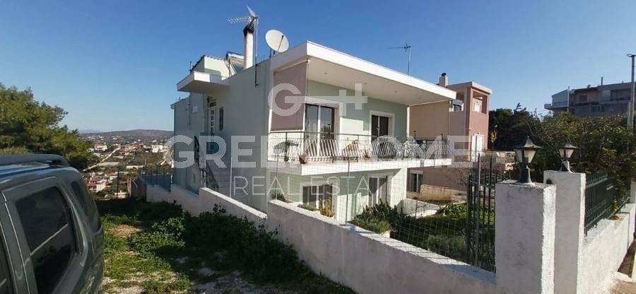 Koropi, Agia Marina - Detached House 320sqm plot 1000sqm, bedrooms 5, levels 2, ground floor - 1st, good condition, year built 1995, energy class D, living room, 3 kitchens, 3 bathrooms, wc, heating type: autonomous (oil), air condition, parking open space, quiet, dual aspect apartment, luminous, sea view, frontage, solar heater, boiler, fireplace, large balconies, garden, private terrace, aluminum frames, double glazed windows, door screen, ceramic tiles floors, internal staircase, east-southern orientation.