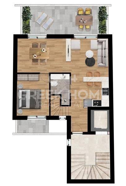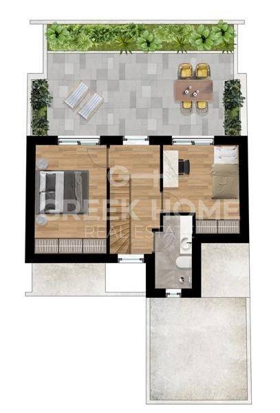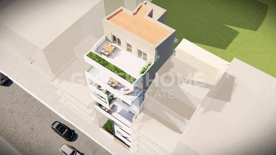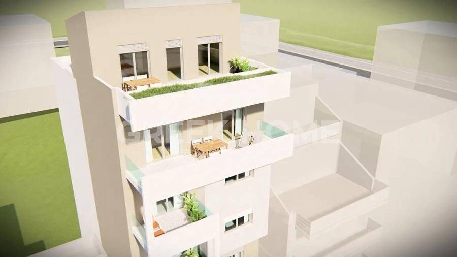 Kallithea (Attica - Southern Suburbs), Lofos Filaretou - Full floor Maisonette 101sqm plot 126sqm, unfurnished, bedrooms 3, levels 2, 6th - 7th, penthouse, under construction, constructionstage bricks, year built 2025, energy class A+, living room, hall, kitchen, bathroom, wc, heating type: autonomous (heat pump), air condition, parking ground floor, quiet, dual aspect apartment, luminous, unobstructed view view, frontage, painted, electric roller shutters, storage space 7sqm, solar heater, external thermal insulation, balconies, large balconies, balcony 36sqm, elevator, garden, built in appliances, thermal shut-off frames, double glazed windows, door screen, ceramic tiles floors, handicap ramp, three phase electricity, secure door, alarm, video doorbell, luxurious, solar panels, internal staircase, internet, pets allowed, close to market (up to 100m).