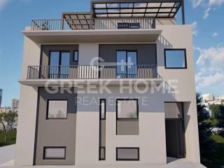 Peristeri, Hrysoupoli - Building 266sqm bedrooms 8, levels 4, ground floor (88sqm) - 1st (75sqm) - 2nd (75sqm) - 3rd (28sqm), newly built, year built 2026, energy class A, 4 kitchens, 6 bathrooms, heating type: autonomous (natural gas), parking ground floor, quiet, dual aspect apartment, luminous, corner, unobstructed view, frontage, painted, drop ceiling, electric roller shutters, storage space, solar heater, external thermal insulation, balconies, large balconies, balcony 80sqm, elevator, garden, garden 25sqm, aluminum frames, double glazed windows, door screen, ceramic tiles floors, separate kitchen, secure door, alarm, video doorbell, luxurious, internal staircase, smart home, cloakroom, pets allowed, south-eastern orientation, close to park (up to 100m), close to market (up to 100m), close to square (up to 100m), close to super market (up to 100m), close to school (up to 200m).