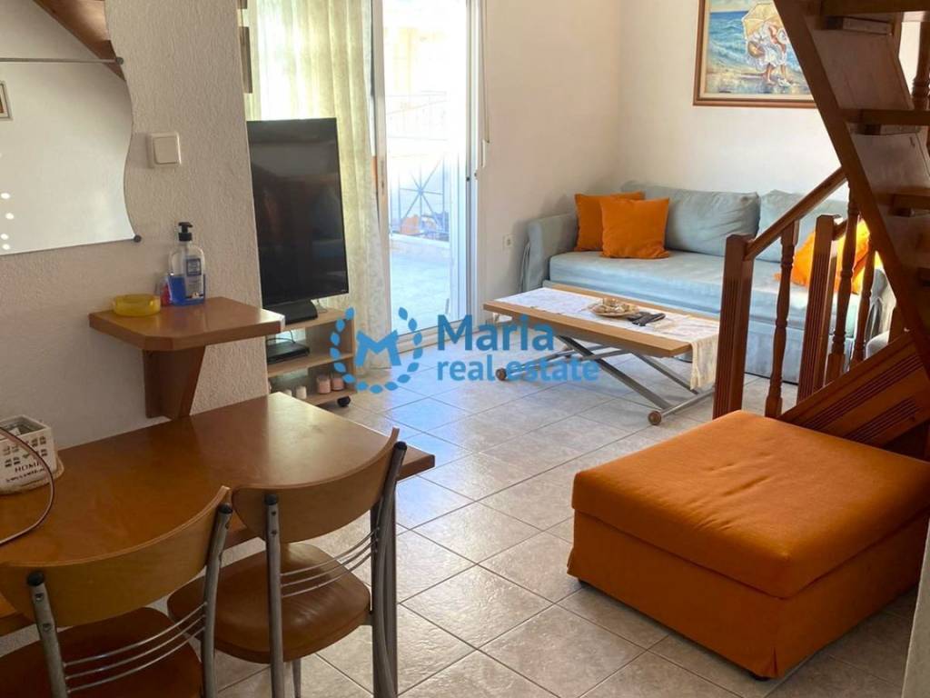 PROPERTY CODE 17751 Apartment of 57.52 sq.m. for sale in Paralia Ofriniou, Kavala. The main entrance of the apartment is located on the 2nd floor, 45.63 sq.m., and consists of a living room, kitchen, bedroom, and bathroom. An internal staircase leads us to the attic/room of 11.89 sq.m. The apartment has a garage of 22 sq.m., aluminum frames, screens, 2 awnings, a water heater, and air conditioning. It will be delivered partially furnished and with electrical appliances. Distance from the sea is 150 meters.
