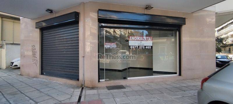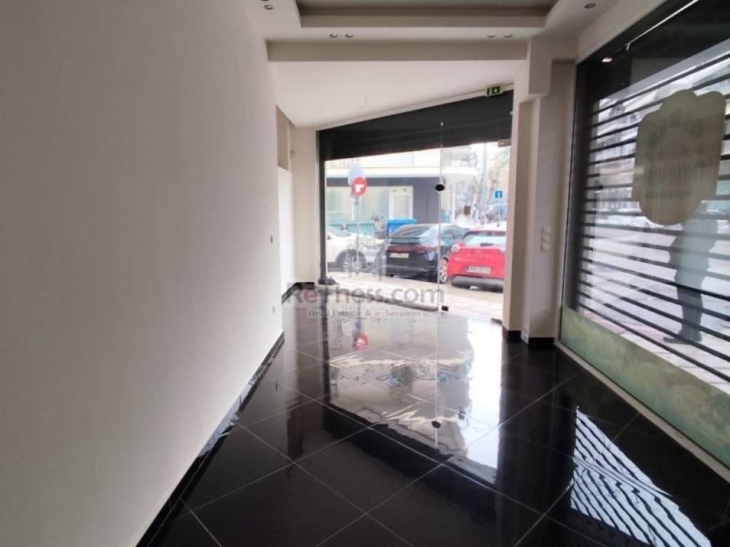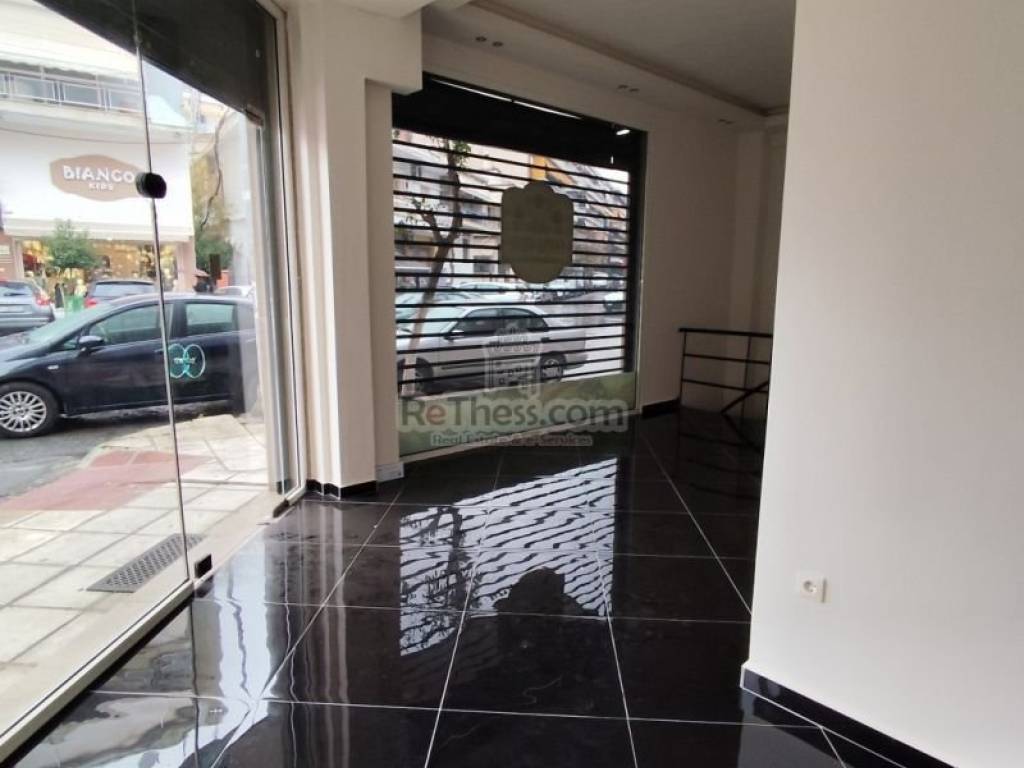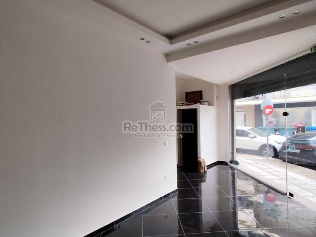 ID:2-595 | For rent €420/month Commercial space in Ampelokipis Thessaloniki ground floor corner shop, renovated (the renovation finished in October 2025) 80sqm with 2 facades 3 and 4 meters respectively, in a 2007 building with apartments. It is located in the center of Ampelokipi. It is surrounded by supermarkets, schools, tutoring schools, sports centers and residences! It has own parking space, tiled floors, two areas: the ground floor 40 sq m and another 40 sq m. basement and wc, window projection 7 meters, electric security shutters and alarm.