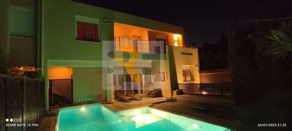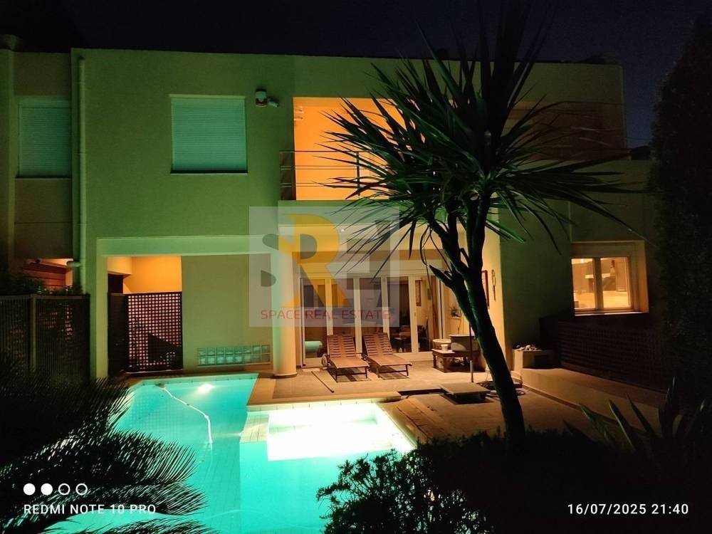 Ano Glyfada: For sale, a luxurious maisonette with a total area of ​​400 sq.m., 2 levels (main use 200 sq.m.) on a plot of 486 sq.m. with a swimming pool and a wonderful view of the mountain and the sea. It consists of 4 bedrooms of which 1 is a master, 1 living room, 1 kitchen, 2 bathrooms, 1st basement 100sqm with 3 closed parking spaces, 2nd basement 100sqm warehouse, garden and large terraces. Built in 2008, it has independent underfloor oil heating, boiler, fireplace, air conditioning, synthetic aluminum frames with double glazing and screens, heavy-duty security door, tile-wood-marble floors, awnings, alarm, solar water heater, BBQ, video door entry, internal elevator, security cameras and photovoltaic panels with batteries. It is an excellent building with east meridian orientation, fully equipped, very close to schools, transport and market. Price €1,550,000 | Property Code: #3179 | Email: info@realspace.gr | Web: www.realspace.gr (Note: The indicated point on the map is indicative of the neighborhood in which the property is located and does NOT determine its actual address.)