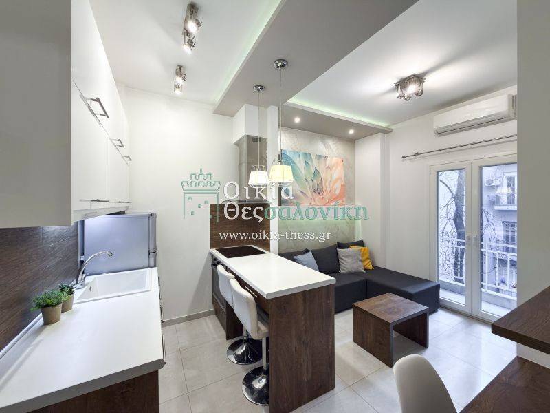 Egnatia with Agias Sofias. Fully renovated and furnished apartment for rent, 35 sq.m. gross, on the second floor of a 1967 building.