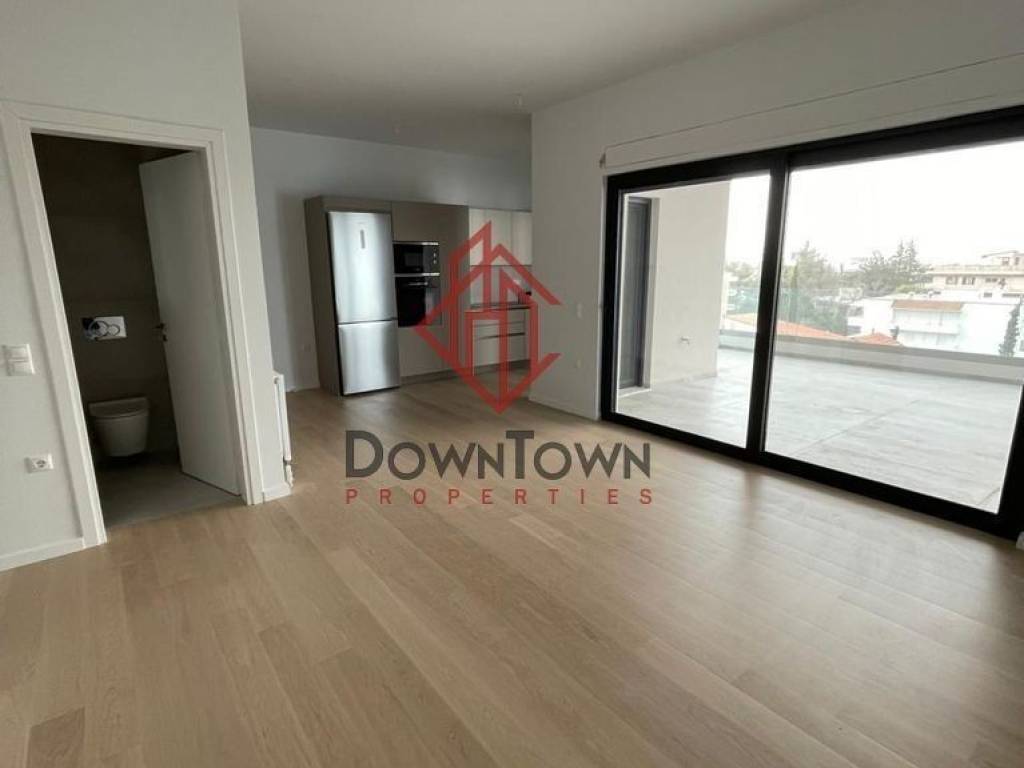 On Herod Atticus Street in Marousi, a luxurious newly built penthouse apartment of 84 sq m. is for rent on the 5th floor with a private terrace of 79 sq m., in a modern building built in 2025, front-facing and very bright in excellent condition. It consists of 2 bright bedrooms with fitted wardrobes and a shared balcony, bathroom, w.c, open kitchen equipped with electrical appliances, living room with energy fireplace and access to a large terrace with wonderful unlimited views. It has autonomous heating with heat pump, aluminum frames with double glazing and screens, tiled floors - parquet, security door, video intercom, alarm, air conditioning, special space for washing machine, solar panel, large terrace with unlimited views of the facade and balcony, basement storage room of 15 sq m. and 2 basement parking spaces. Excellent apartment with comfortable layout and easy access to the center of Kifissia and Maroussi. Price: 1,800€, Property Code: 31509. Downtown Properties, Tel: 2105225000, email: info@downtownproperties.eu, website: www.downtownproperties.eu