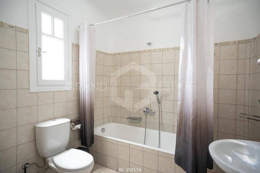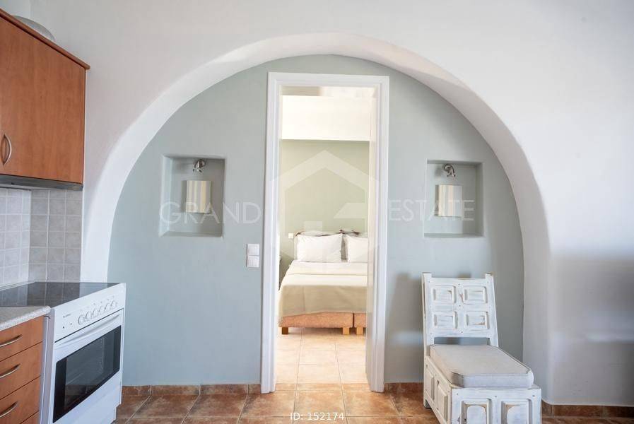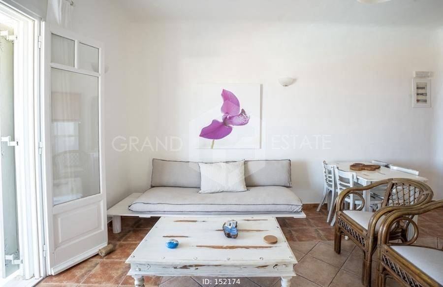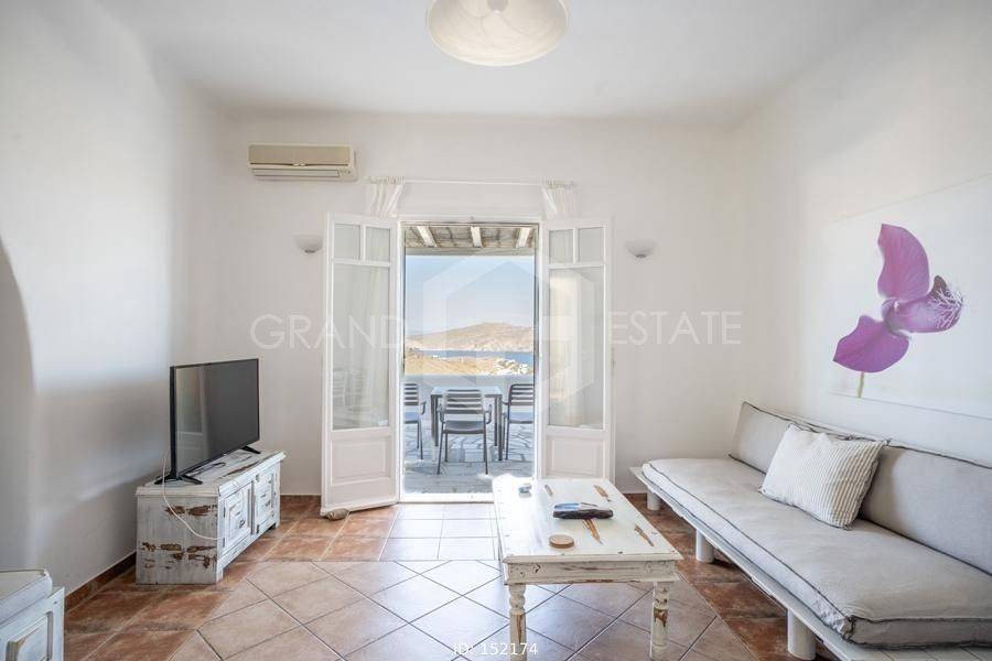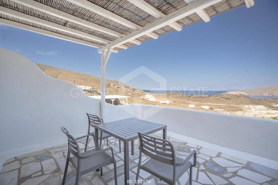 Mykonos, Panormos - Apartment 54sqm plot 4050sqm, fully furnished, bedroom, 1st floor, excellent condition, year built 2006, energy class D, living room, kitchen, bathroom, heating type: autonomous (electricity), air condition, a/c type vrv, quiet, luminous, sea view, frontage, painted, boiler, balconies, large balconies, tents, garden, built in appliances, wooden frames, double glazed windows, door screen, ceramic tiles floors, surveillance cameras, luxurious, swimming pool, barbeque, satellite, internet, residential zone, access from asphalt, investment property. Wonderful apartment 54m2 in a complex of 12 residences, with a large mature shared garden including a small chapel, a large comon use swimming pool, shared bbq, outdoor bathrooms & showers. The apartment has a large terrace with a view to the sea, an open-plan living room, dining area and kitchen, a bedroom and a bathroom with bath tab. It has air conditioning, a boiler for hot water, is fully furnished and equipped with electrical appliances (flat screen TV, iron, kitchenette, small fridge, hairdryer, coffee maker. It is located in the beautiful bay of Panormos, in the northeastern part of the island, just 10 minutes by car (or motorbike) from Mykonos town or the airport and 15 minutes from the famous beaches of Elia and Super Paradise. Panormos beach, just a 10 minute walk away, named after the bay, is one of the few beaches on the island that remains truly unspoilt. It has a nice long strip of white sand with crystal blue waters and enjoys a little more protection from the winds. The property's clear and ready for its new owner. Ideal for a holiday home and high yield investment. Viewings will be realised after the 20th of March.