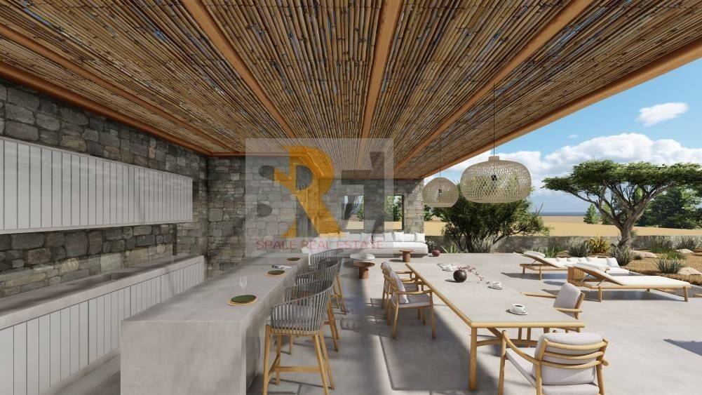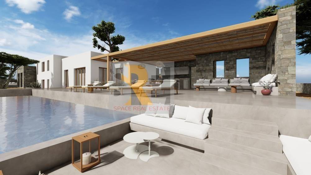 Paros, Golden Coast: For sale, under construction, single-family house with frontage of 222 sq.m. 2 levels in 5,350 sq.m. plot, luxurious construction and modern minimalist aesthetics. Its construction is based on all modern energy standards with energy class A+, thermal facade, individual heating with heat pumps for cooling and heating, air conditioners, solar water heater, high quality wooden frames with double glazing-screens and boiler. The residence consists of 2 levels, the ground floor consisting of a living room, dining room, kitchen, 2 master bedrooms, 2 bathrooms and 2 wc and the 1st floor consisting of 1 master bedroom and 1 bathroom. In the listed square footage there is the option of an additional guest house of 32 sq.m. Outside, the garden on an area of 305 square meters is laid out with a pergola, with a BBQ and a living-dining room, a swimming pool of 56 square meters and 3 covered parking spaces. It also has a storage room, tiled floors, screens and an alarm with central circuit television. In an excellent location approximately 550 meters from the Golden Coast beach, the property is also recommended as an investment property. During construction, the buyer can make many changes based on his own preferences. Price €1,500,000 | Property Code: #1794 | Email: info@realspace.gr | Web: www.realspace.gr (Note: The indicated point on the map is indicative of the neighborhood in which the property is located and does NOT determine its actual address.)