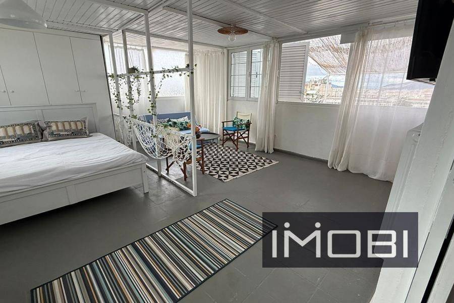 Ano Patisia, Apartment,, Sale, 60 sq.m, year built 1975, renovated in 2020, 1 rooms, 5th, Availability: Available, Heating: Air-condition, Central Oil, View: Unobstructed, Construction type: Prefabricated, Condition: Excellent condition, Renovated, Floor type: Marble, Window frames: Aluminum, Energy class: E, Zoning: Residential, Orientation: East, South-east, Position: Dual-aspect, Includes: Bathroom, Double glazing, Elevator, Private terrace, Veranda, WC, Suitable for: Professional use, Students, Characteristics: Bright, Furnished. property ID: 1112, www.imobi.gr