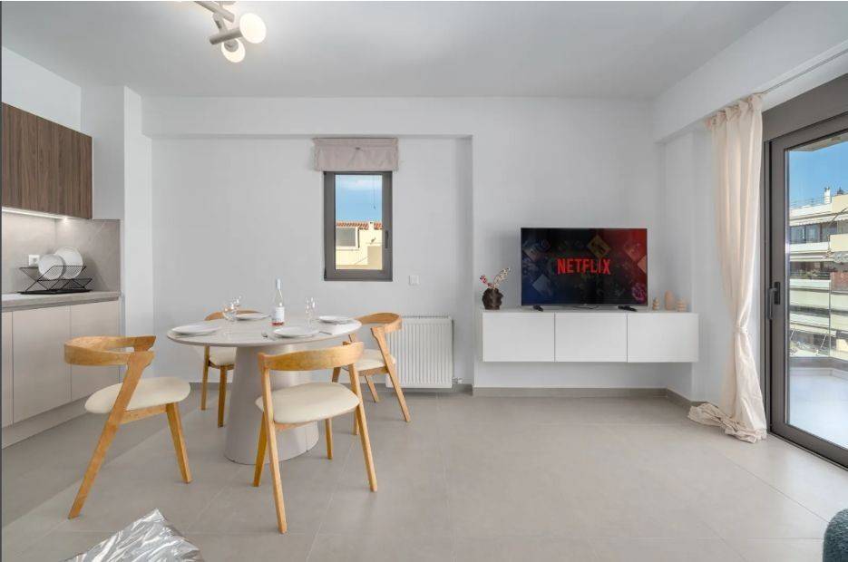 Glyfada – Brand New Luxury Apartment for Rent (Code 2120) Exceptional newly built 3rd-floor apartment, designed with high aesthetics and premium finishes, fully furnished and fully equipped, with a total area of 79 sq.m. The property features 2 bedrooms, 1 bathroom, a modern kitchen with brand-new appliances, and a spacious living room with a large sofa and Smart TV. Elegant parquet flooring, aluminum window frames with double glazing, open-view balconies, and abundant natural light enhance the refined atmosphere. Additional features include autonomous natural gas heating, air conditioning, solar water heater, washing machine, storage room, underground parking space, and access to a swimming pool. Located in a quiet and upscale area of Glyfada, close to parks, shops, gyms, market area, and public transportation. Immediately available Price: €2,600 per month
