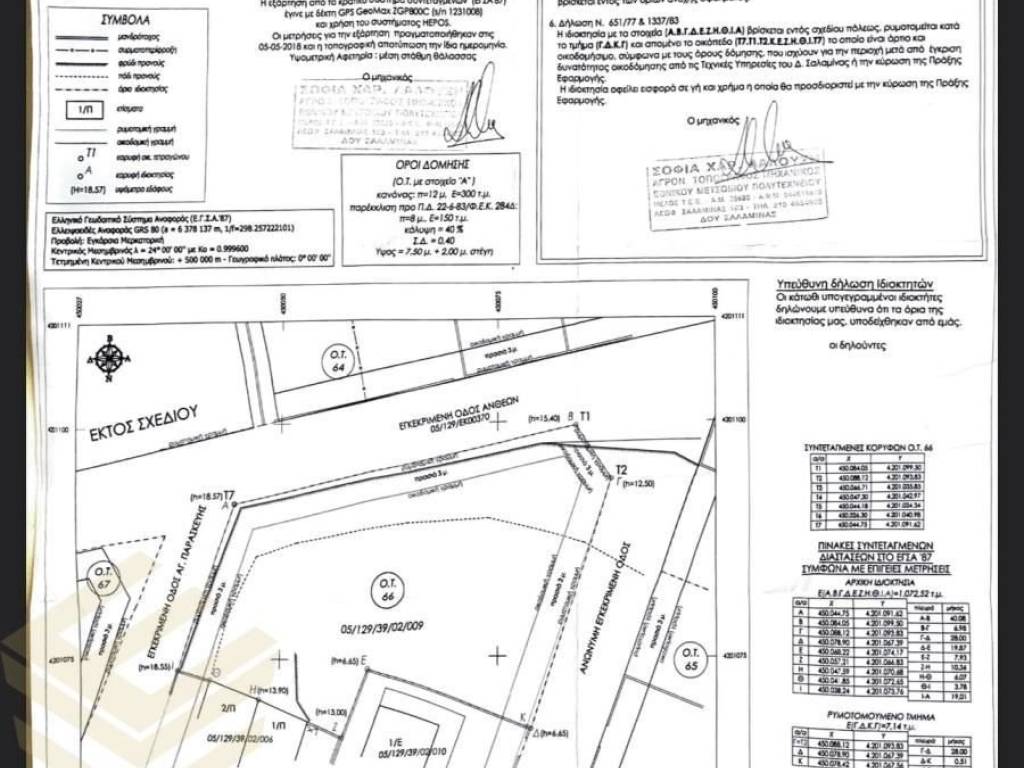Salamina, Resti, Plot For Sale, In City plans, 1.065 sq.m., Frontage (m): 40, Depth (m): 27, Building factor: 0,4, Coverage factor: 40, View: Sea view, Features: For development, Roadside, On Corner, Three Fronted, Amphitheatrical, Flat, For Homes development, Α.Ο.Τ: 66. A unique plot within the plan in the area of Salamina with the most beautiful beach!! The plot is located in the area of Resti and is three-sided at a distance of 90 meters from the beach and with a sea view. It can build 426 square meters with a height of 7.5 meters plus 2 meters of tiled roof and attic. With the square meters it is building, a developer can easily take advantage of it! It is undoubtedly an opportunity that you cannot miss.