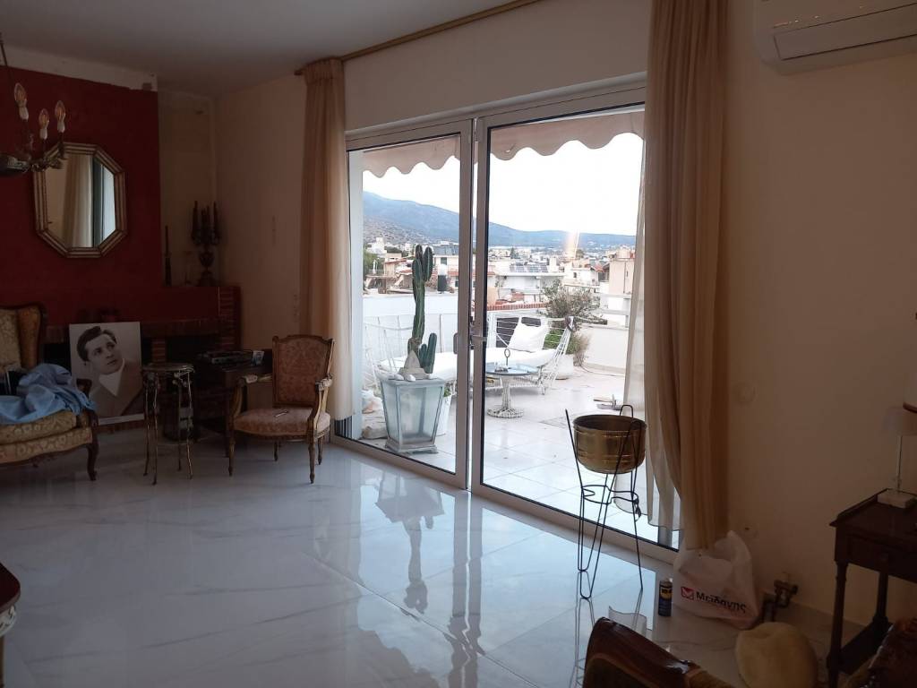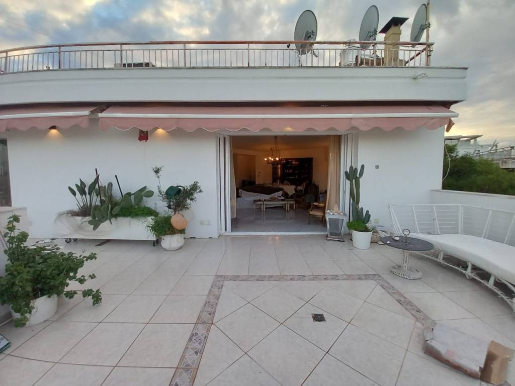 Impressive 130 sqm penthouse with expansive 100 sqm terraces, ideally located in a prime area of Varkiza, just 500 meters from the sea. Fully renovated in 2023, the property offers an overall living experience of 230 sqm, combining open views, comfort and refined design. The bright reception area features large glass openings that flood the interior with natural light and frame views of pine trees, mountain and sky, while the rooftop level enjoys panoramic sea views. The apartment includes two generously sized bedrooms with wooden flooring, a master suite with walk-in closet, and two spacious contemporary bathrooms. Additional features include a fireplace, autonomous oil heating, thermal insulation, air conditioning, security door and alarm system. Electric awnings enhance the functionality of the terraces, while two storage rooms and two parking spaces add significant practicality. Situated on the 4th floor, the property is dual-aspect, east-oriented and part of a residential zone, within walking distance of beaches, shops and public transport. An exceptional choice for a primary residence or refined holiday home on the Athenian Riviera. Real Estate Rothos 0030 6955065926 , 6944303522 , 210 - 8961204
