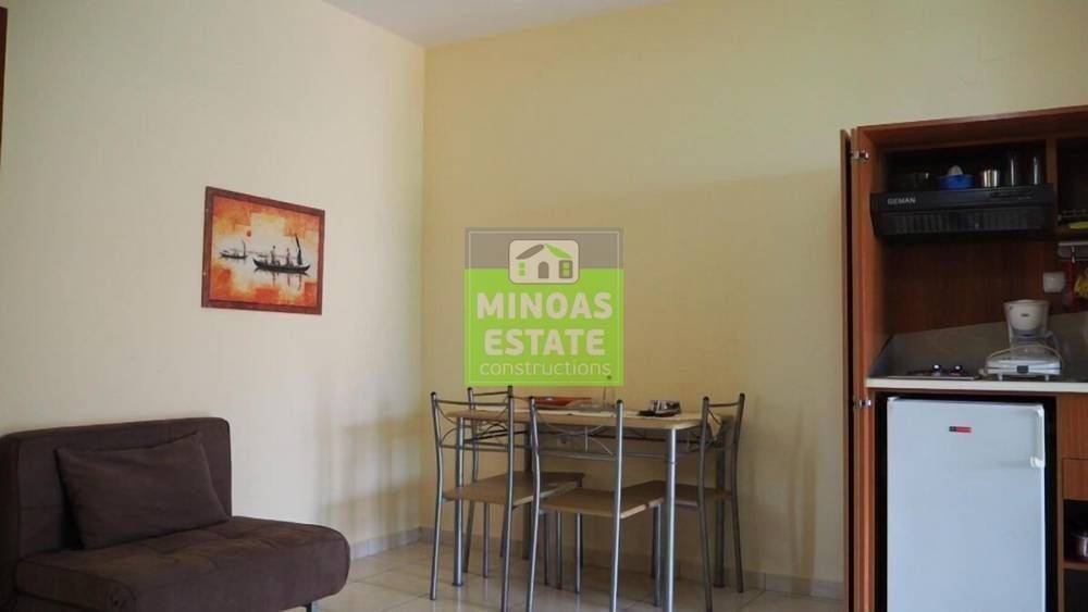 Nea Kydonia, Stalos: Partially renovated bright and airy 40 sq.m. apartments for rent. facade on the ground floor and 1st floor with individual heating (air conditioning) in a 2-story building. They consist of 1 bedroom, 1 kitchen-living room, Garden, and bathroom. They are furnished, equipped, with electrical appliances (kitchenette), will be delivered painted, close to SCHOOLS-PHARMACY-SUPERMARKET-SEA and have a nice view, aluminum frames with double glazing, security door, tile floors, solar water heater. They are ideal for employees and pets are allowed. (long-term rental) Free services: internet, water. There is a common laundry room, but there is the possibility to enter the kitchen for the laundry room from the tenant. Price €550 Property Code: #E-201042