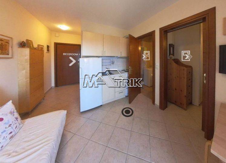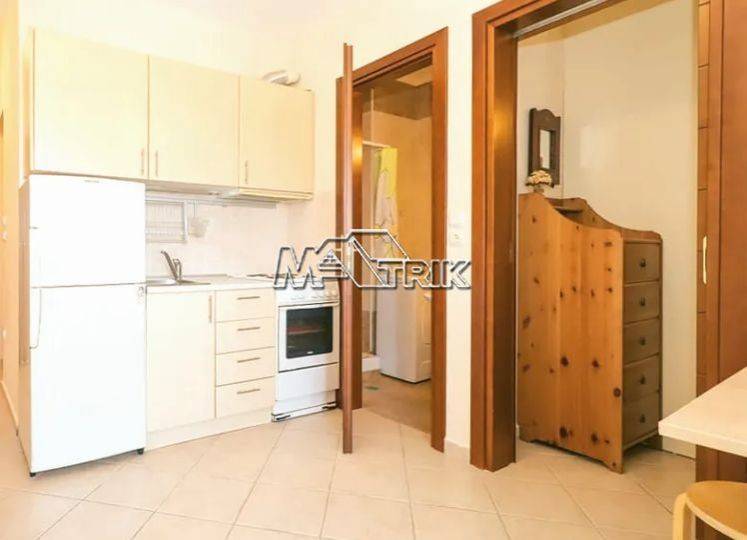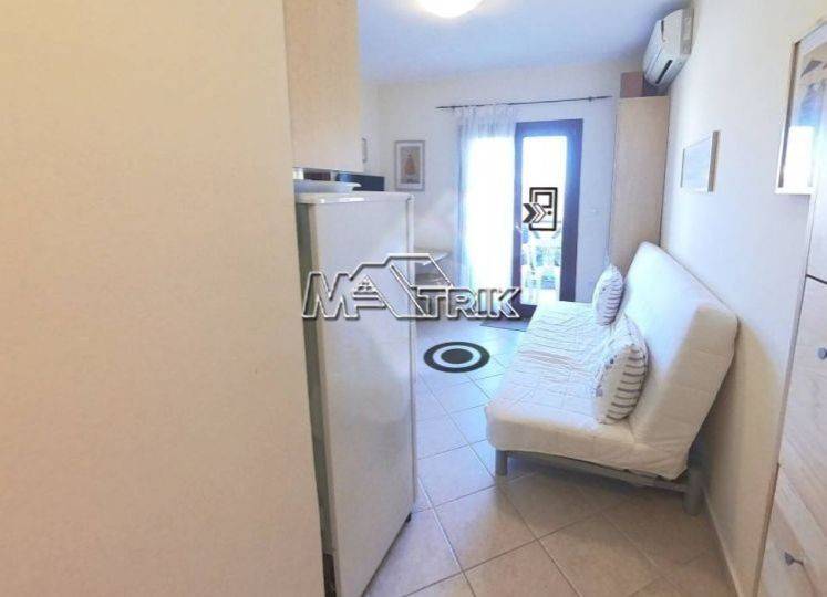 Chalkidiki, Afytos, apartment 37sqm, with partial sea view, first floor in a residential complex. it consists of one bedroom, open plan kitchen with a special formation including a small office space, and one bathroom. it has aluminum frames with double glazing and screens, tile floor, security door, wardrobe and 1 air condition unit. the apartment is fully furnished and equipped with all electrical appliances, ready for use from day one. it is located 600 meters from the center and the beach.