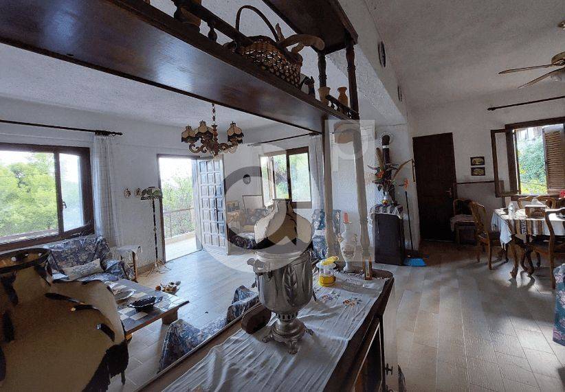 Malesina, Osmaes - Detached House 135sqm plot 2150sqm, bedrooms 2, levels 2, semi-basement (46sqm) - ground floor (89sqm), needs renovation, year built 1985, energy class F, living room, hall, kitchen, bathroom, heating type: no heating, parking open space, quiet, dual aspect apartment, luminous, unobstructed view, frontage, storage space, fireplace, balconies, garden, wooden frames, ceramic tiles floors, three phase electricity, night electricity discount rate, internal staircase, pets allowed, within city plan, residential zone, access from asphalt.