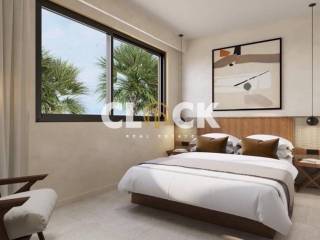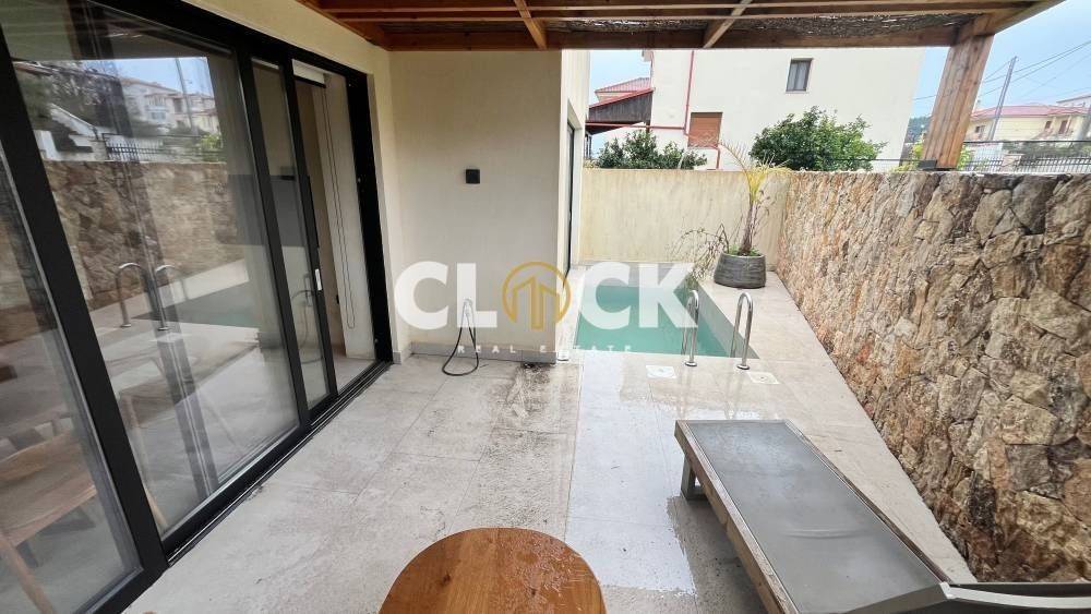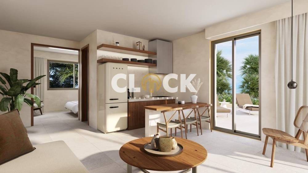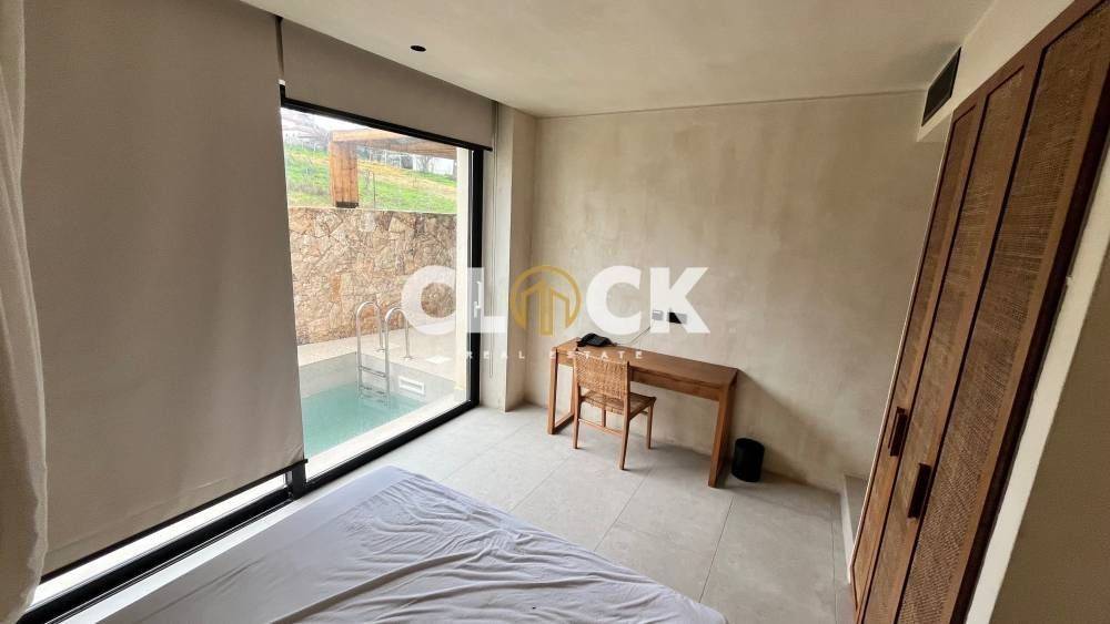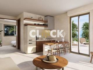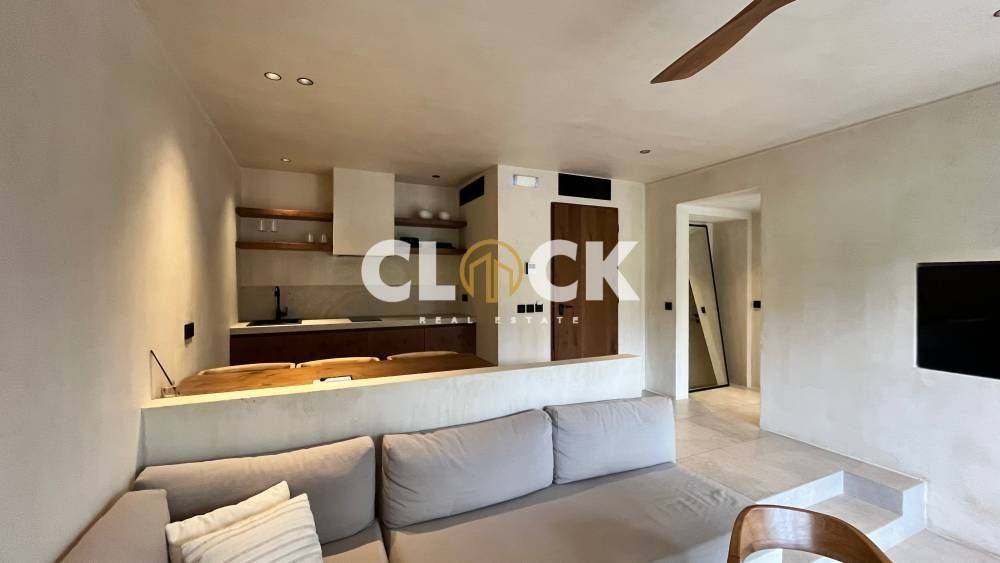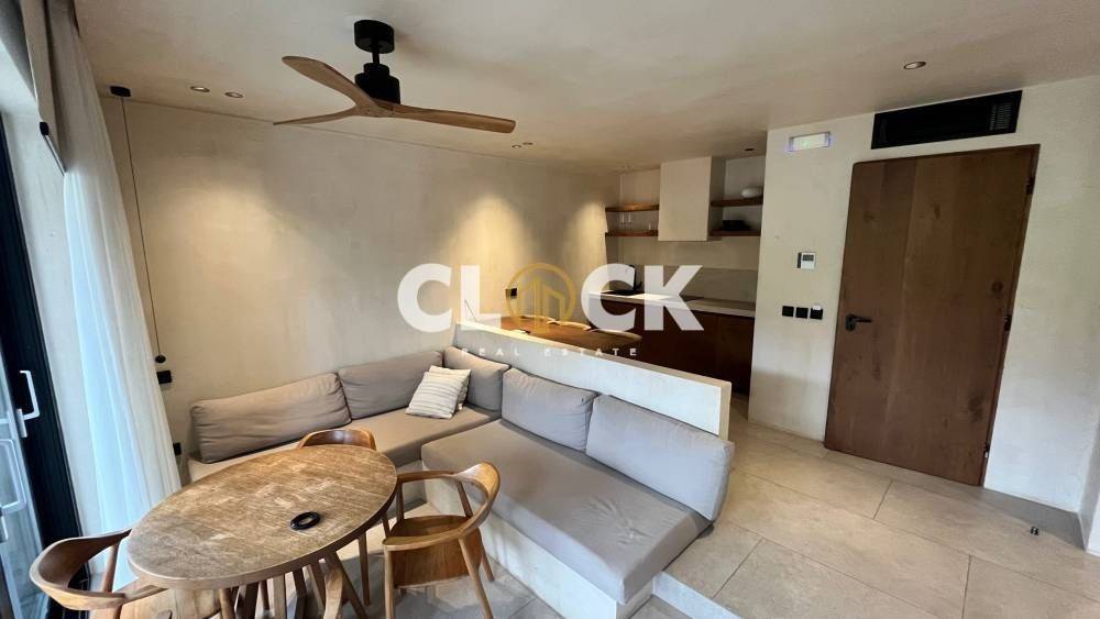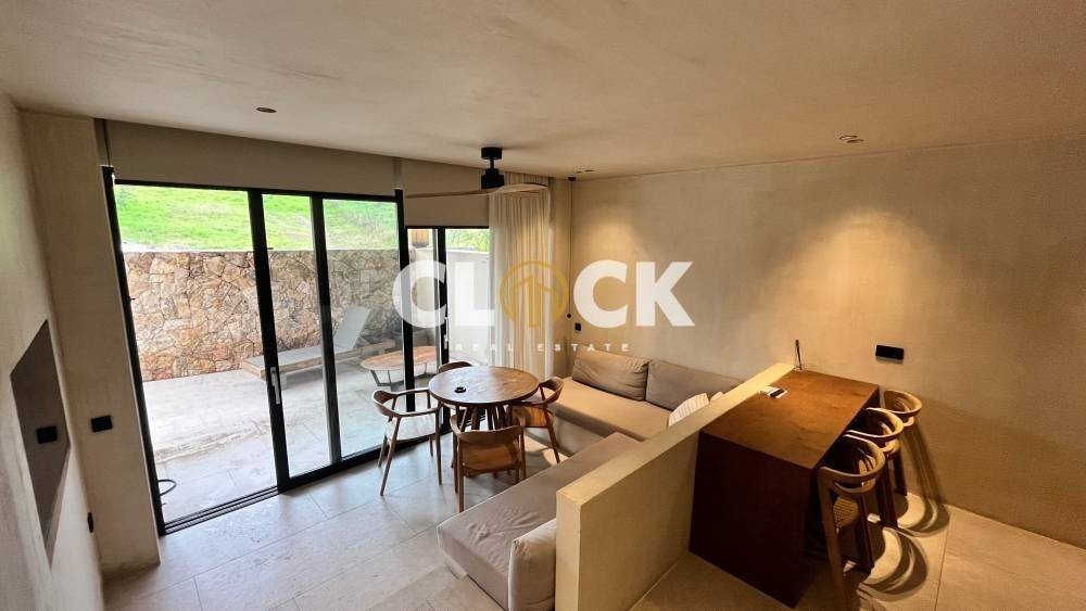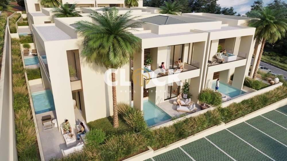 The residences, with a surface area of 43 sq.m., are currently under construction and are designed with a minimal architectural approach, clean lines, and the use of natural materials such as stone and wood, creating a timeless result of understated luxury.