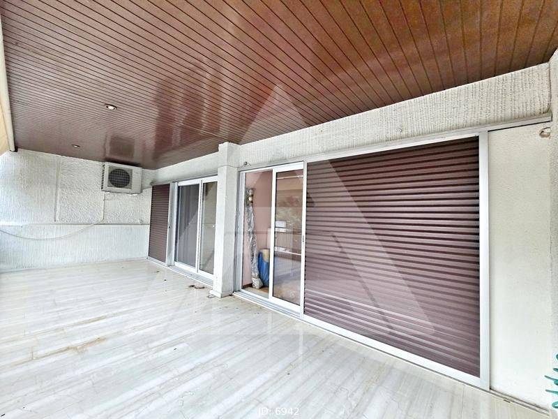 Glyfada, Kato Glyfada - Apartment 120sqm bedrooms 2, levels 1, 1st, fully renovated, year built 1985, renovation year 2025, energy class D, living room, kitchen, bathroom, heating type: autonomous (oil), air condition, a/c type splits, parking ground floor, dual aspect apartment, luminous, frontage, painted, storage space 10sqm, balconies, large balconies, balcony 25sqm, tents, elevator, aluminum frames, double glazed windows, door screen, wood & marble floors, secure door, pets allowed, residential zone, access from asphalt.