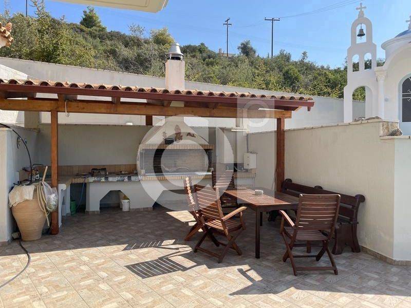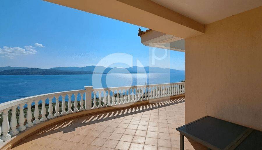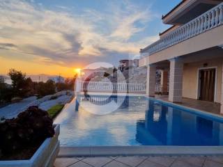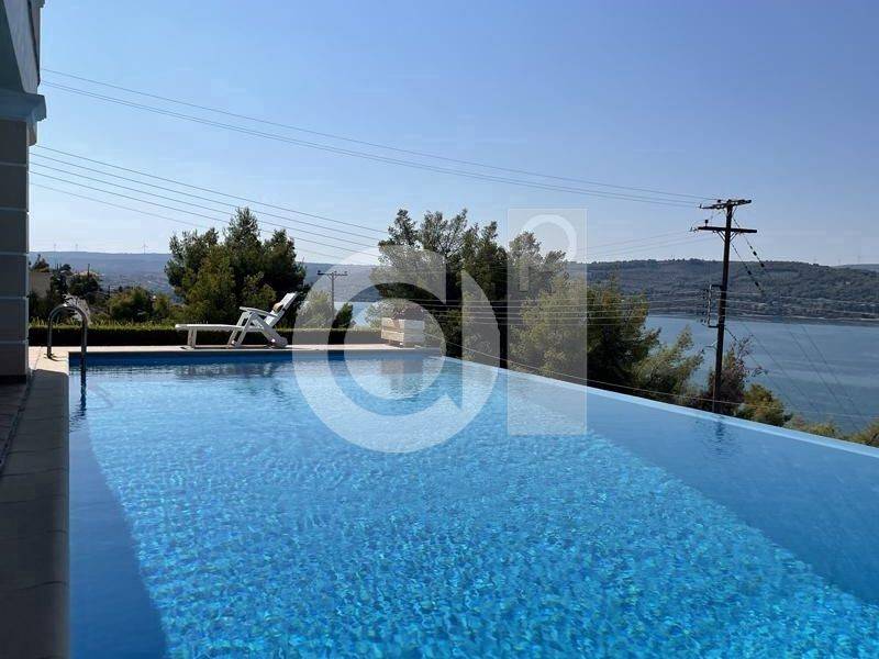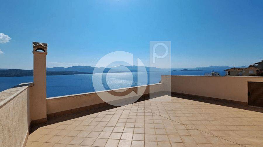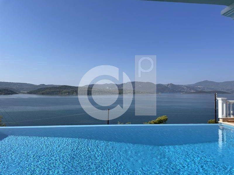 Malesina, Osmaes - Villa 521sqm plot 1050sqm, bedrooms 5, levels 4, basement (200sqm) - ground floor (127sqm) - 1st (97sqm) - 2nd (97sqm), excellent condition, year built 2005, energy class C, 3 living rooms, hall, 3 kitchens, heating type: autonomous (oil), parking covered,3+, quiet, dual aspect apartment, luminous, sea view, frontage, storage space, solar heater, fireplace, balconies, large balconies, garden, thermal shut-off frames, double glazed windows, door screen, wood floors, three phase electricity, night electricity discount rate, secure door, luxurious, swimming pool, internal staircase, barbeque, playroom, satellite, pets allowed, within city plan, residential zone, south-western orientation, access from asphalt.