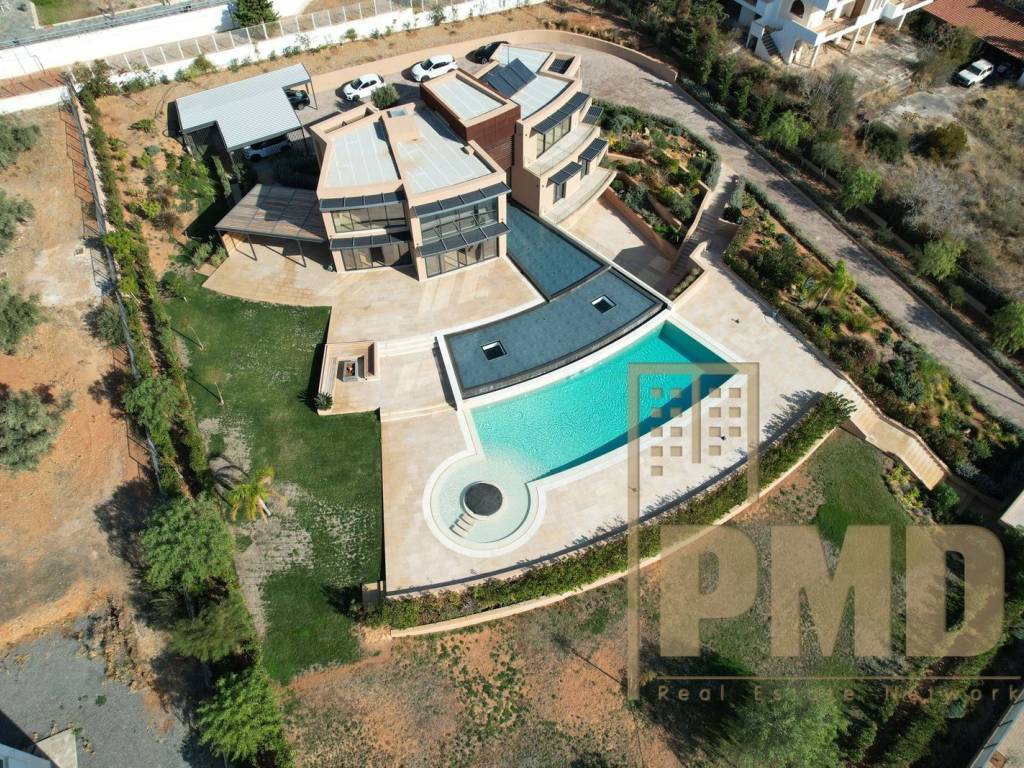 Nestled along the prestigious Athenian Riviera in Lagonisi, this breathtaking 693 sq.m. residence on a 4,154 sq.m. plot redefines luxury and serenity. Built in 2023, it offers seamless architectural sophistication, cutting-edge technology, and unparalleled views of the Saronic Gulf. A grand foyer with floor-to-ceiling windows reveals serene water features and panoramic sea vistas, while a curved bridge connects the upper-level master suite to a private library and office, providing an exclusive retreat. Spanning three levels, the home features seven opulent bedrooms, including two master suites, six luxurious bathrooms, and a guest WC. Dual kitchens and living rooms create versatile spaces ideal for intimate gatherings or grand entertaining. Outside, the landscaped grounds host a magnificent pool, Jacuzzi, and a fire pit seating area, complemented by a secluded barbecue space with a professional gas grill for effortless outdoor dining. Equipped with a state-of-the-art smart home system, every detail is at your fingertips, from heating and cooling to advanced security, all controllable via smartphone. Covered parking for three vehicles, ample guest parking, and dedicated servant quarters ensure convenience and practicality. This property is more than a home—it’s a sanctuary where timeless elegance meets modern luxury along the Athenian coast.