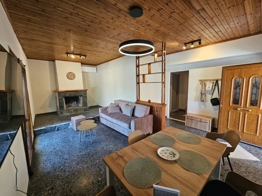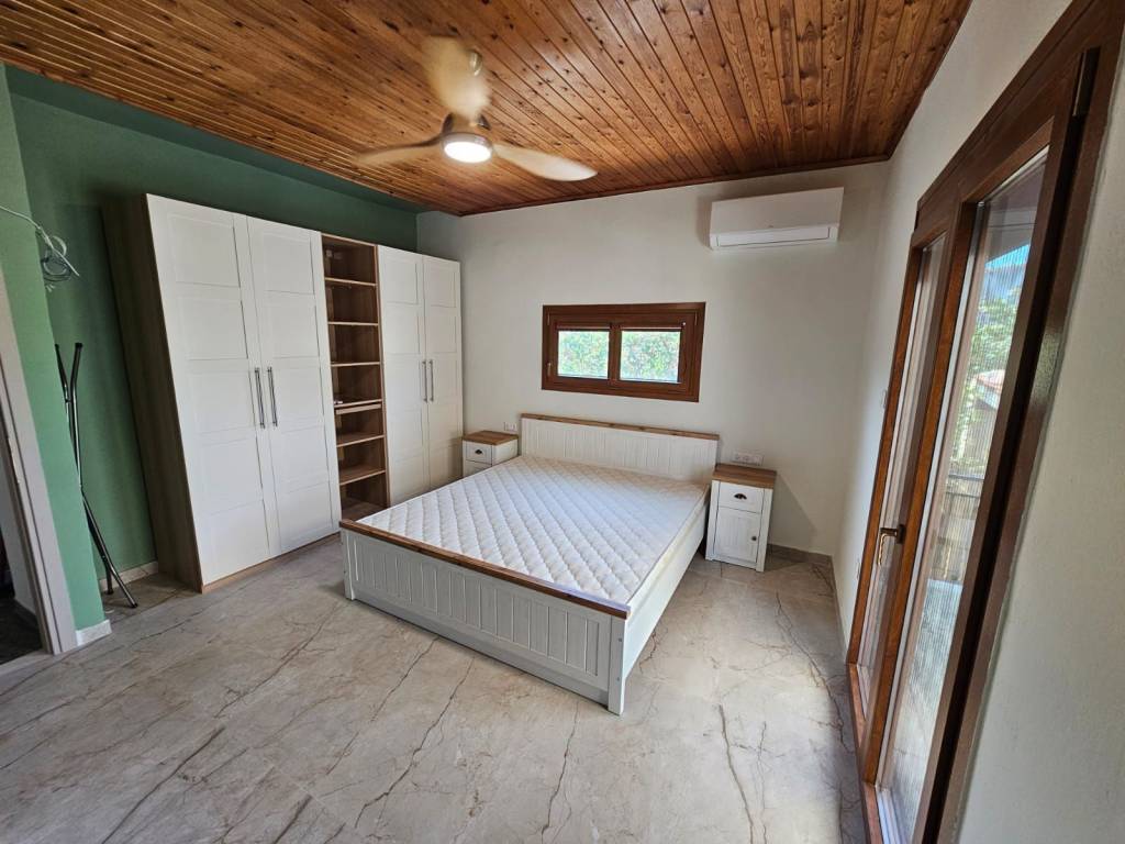 Detached house for rent, 90 sq.m., fully renovated, furnished and equipped, with 2 bedrooms, a parking space, a large covered veranda (35 sq.m.) and outdoor space, in Katafygi, Palaia Fokaia, Municipality of Saronida, Greece. Available only seasonally, for fixed-term stays with a minimum of two weeks, and not for permanent rental. Contact via Viber/WhatsApp.