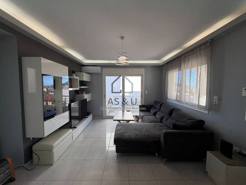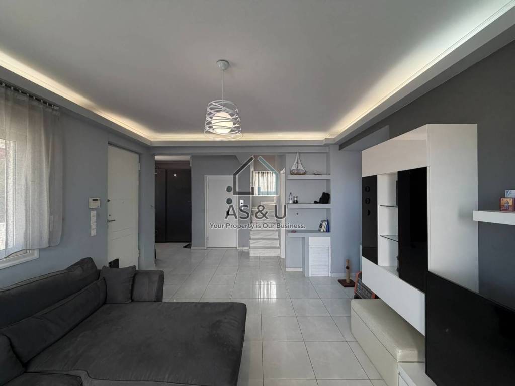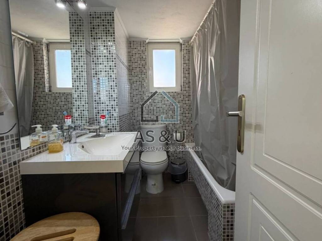 It consists of 3 bedrooms and 1 bathroom located on the 1st floor, 1 living room and an office on the elevated ground floor, and on the lower level, with access to the garden, there is 1 open-plan living room–kitchen, 1 W.C. and a storage room. All floors are tiled and the internal staircase is marble-clad. The elevator reaches all floors, providing access from the ground floor to all levels. It features double-glazed windows with aluminum frames and insect screens, a security door, solar water heater, air-conditioning units, and two outdoor parking spaces within the plot. Energy class D (to be confirmed). The residence is furnished and includes all electrical appliances.