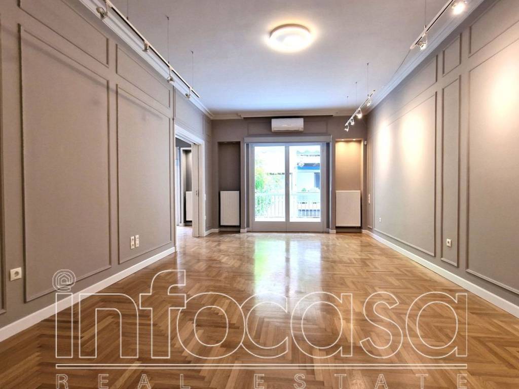 Kolonaki. Unique, fully renovated office space 118 sq.m. on the 2nd floor, part of a luxury apartment building. It consists of spacious living room with balcony, 2 extra rooms and spacious kitchen equipped by branded electrical appliances, many storage spaces, wardrobes and luxuriously renovated bathroom and WC. It has beautiful wooden floors, wooden frames with double glazing, autonomous heating, air conditioning, alarm system, security door and elevator. Appropriate for diplomats, business executives, a couple or a small family. Contact person: Elisa Keremetzi 6932390840.